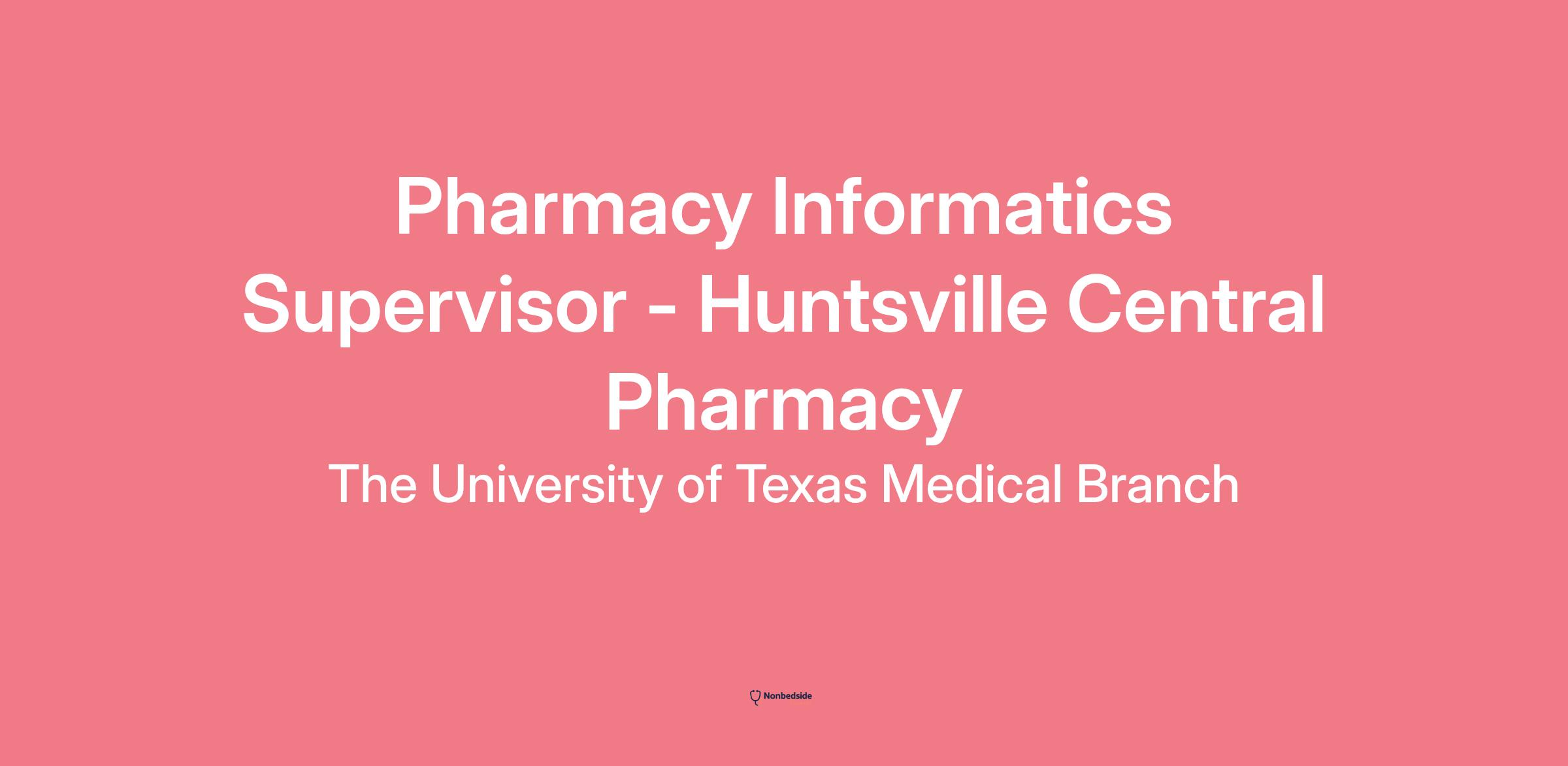 Pharmacy Informatics Supervisor – Huntsville Central Pharmacy – The University of Texas Medical Branch