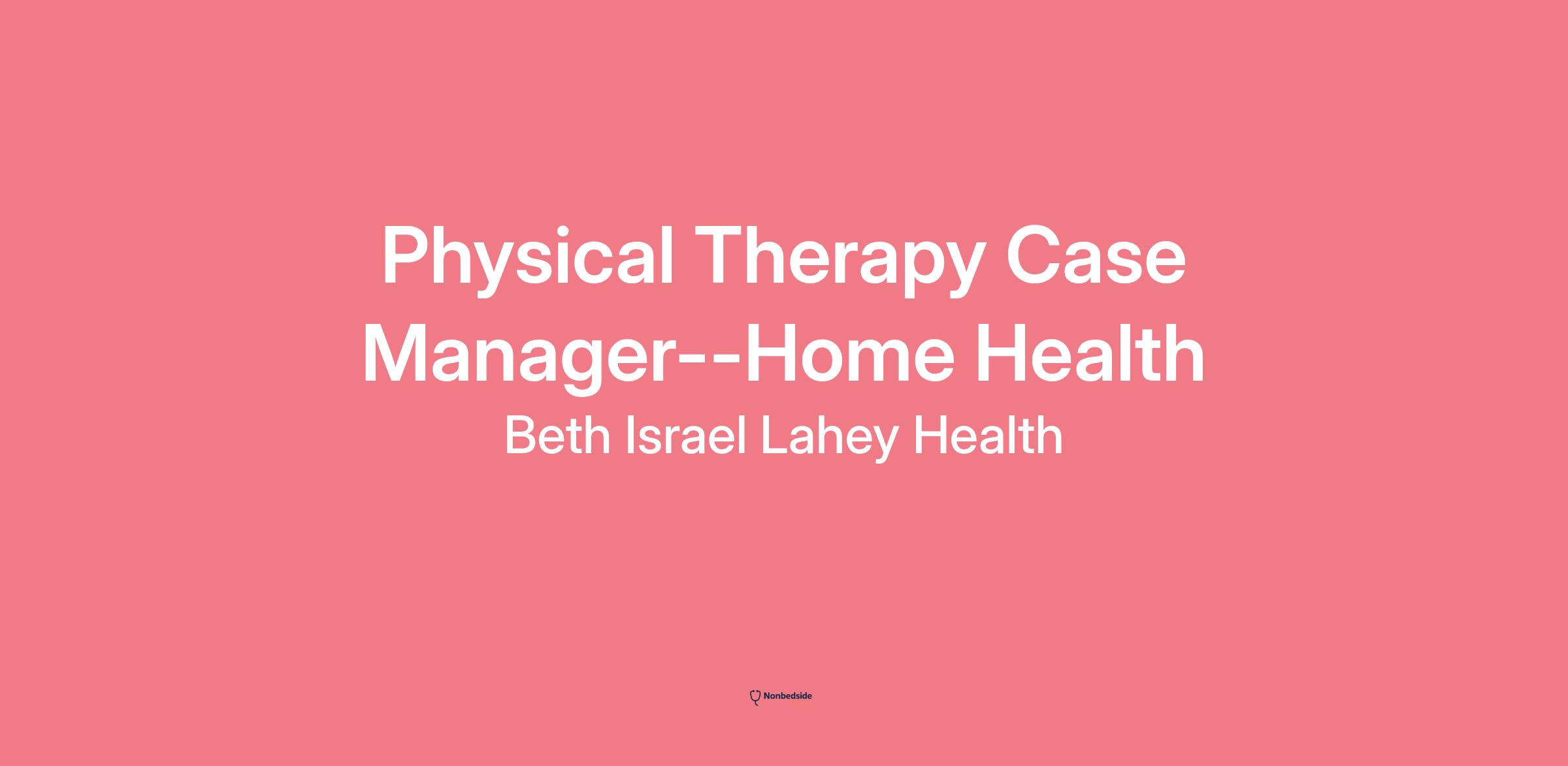 Physical Therapy Case Manager--Home Health Join to apply for the Physical Therapy Case Manager--Home Health role at Beth Israel Lahey Health