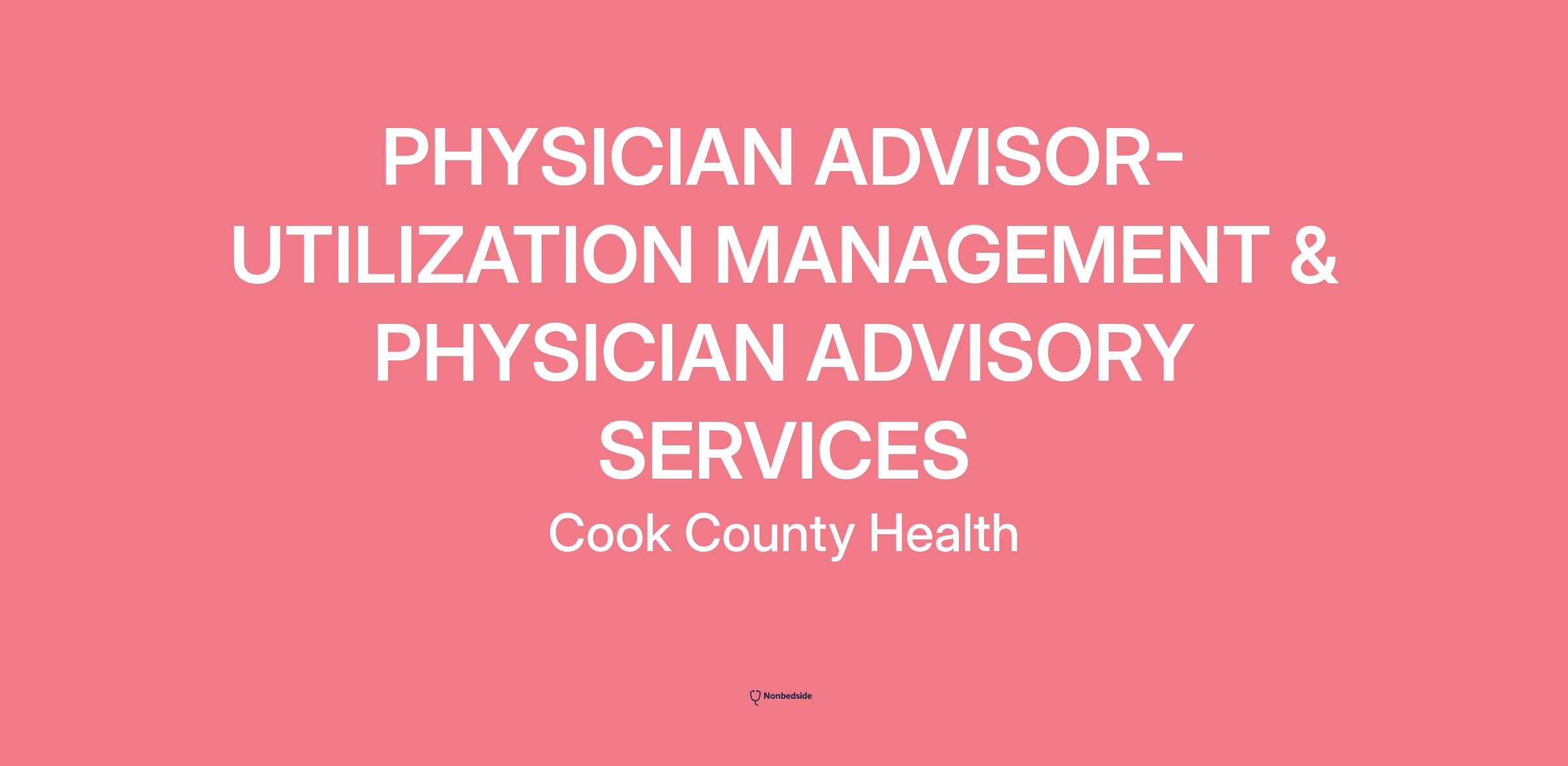 PHYSICIAN ADVISOR- UTILIZATION MANAGEMENT & PHYSICIAN ADVISORY SERVICES LOCATION: JOHN H. STROGER HOSPITAL