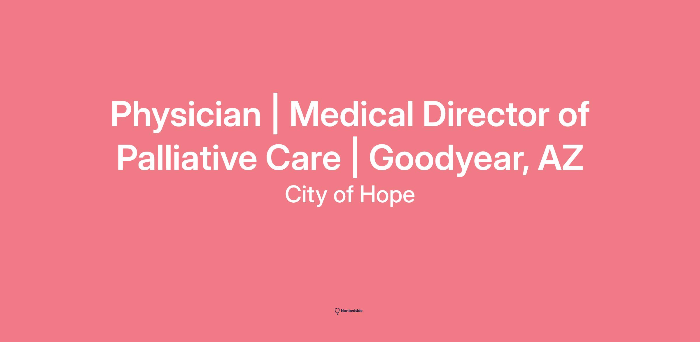 City of Hope, Phoenix (Goodyear, AZ), a leading network of cancer hospitals and outpatient centers, is seeking an outstanding Board Eligible or Board-Certified Palliative Care Physician to join our team as the Medical Director of Palliative Care.