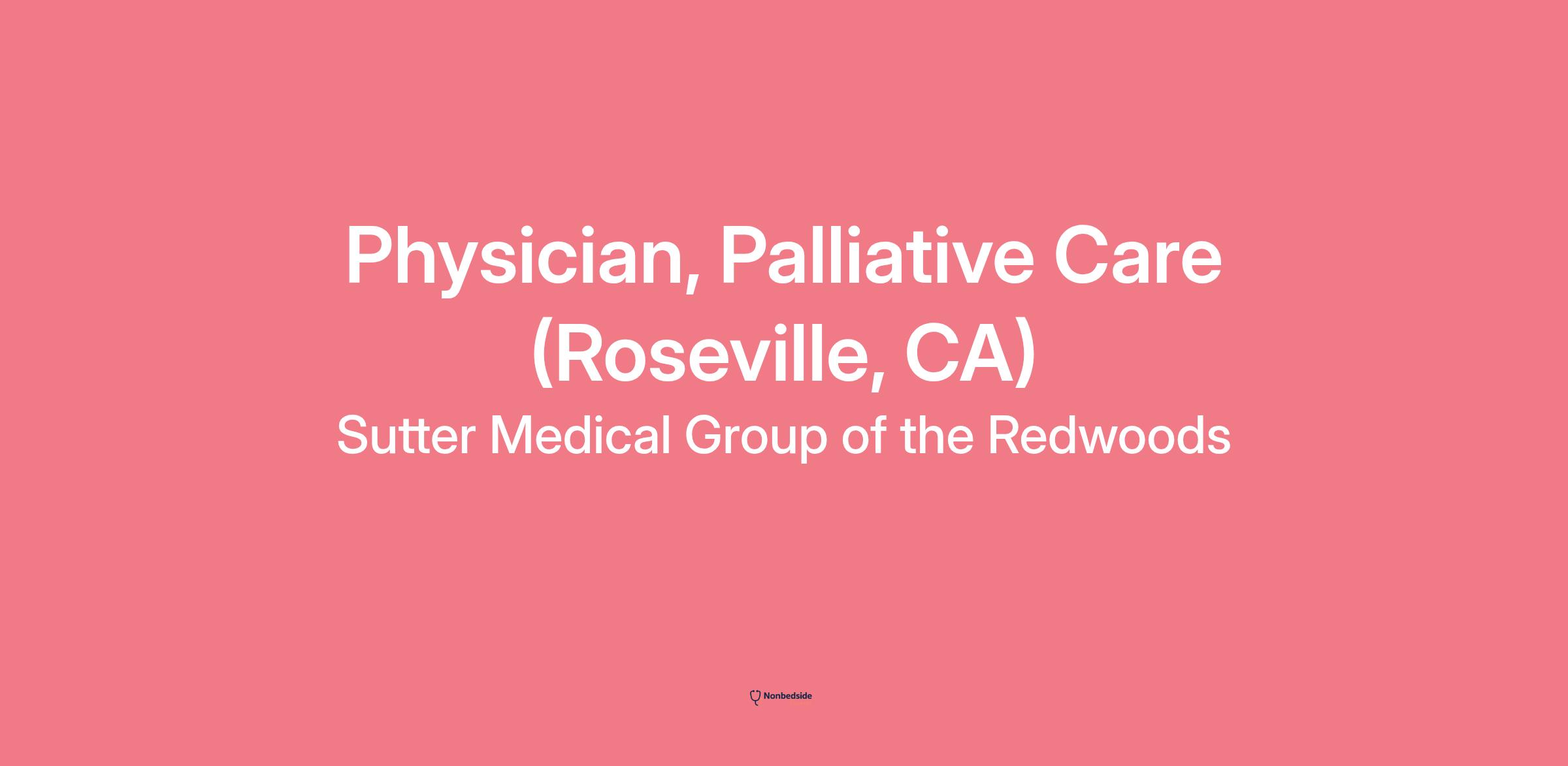 Sutter Medical Group (SMG) seeks to hire a BE/BC Palliative Care Physician to join our dynamic multidisciplinary team in Roseville, CA.