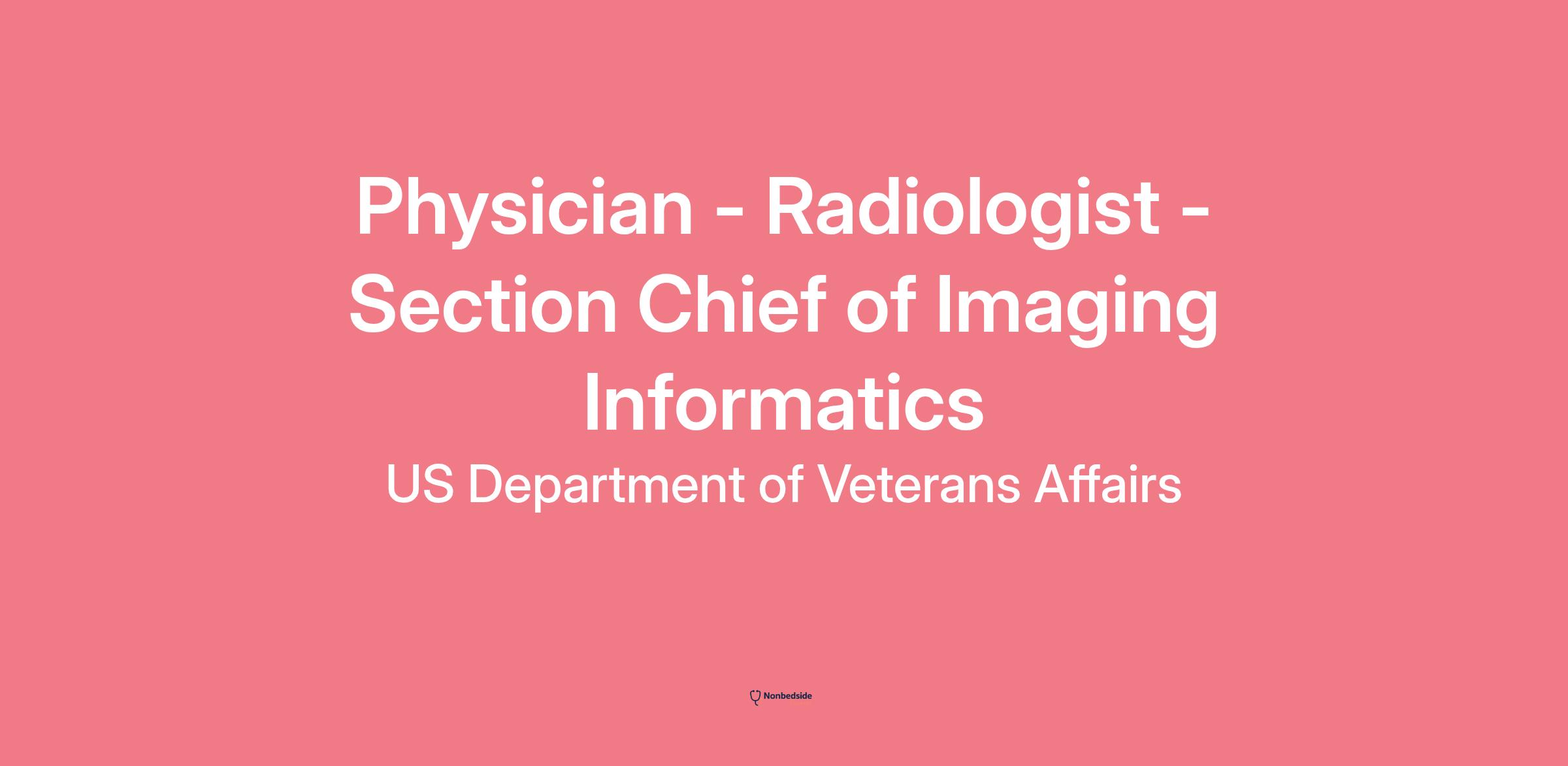 Physician - Radiologist - Section Chief of Imaging Informatics Join to apply for the Physician - Radiologist - Section Chief of Imaging Informatics role at U.S. Department of Veterans Affairs
