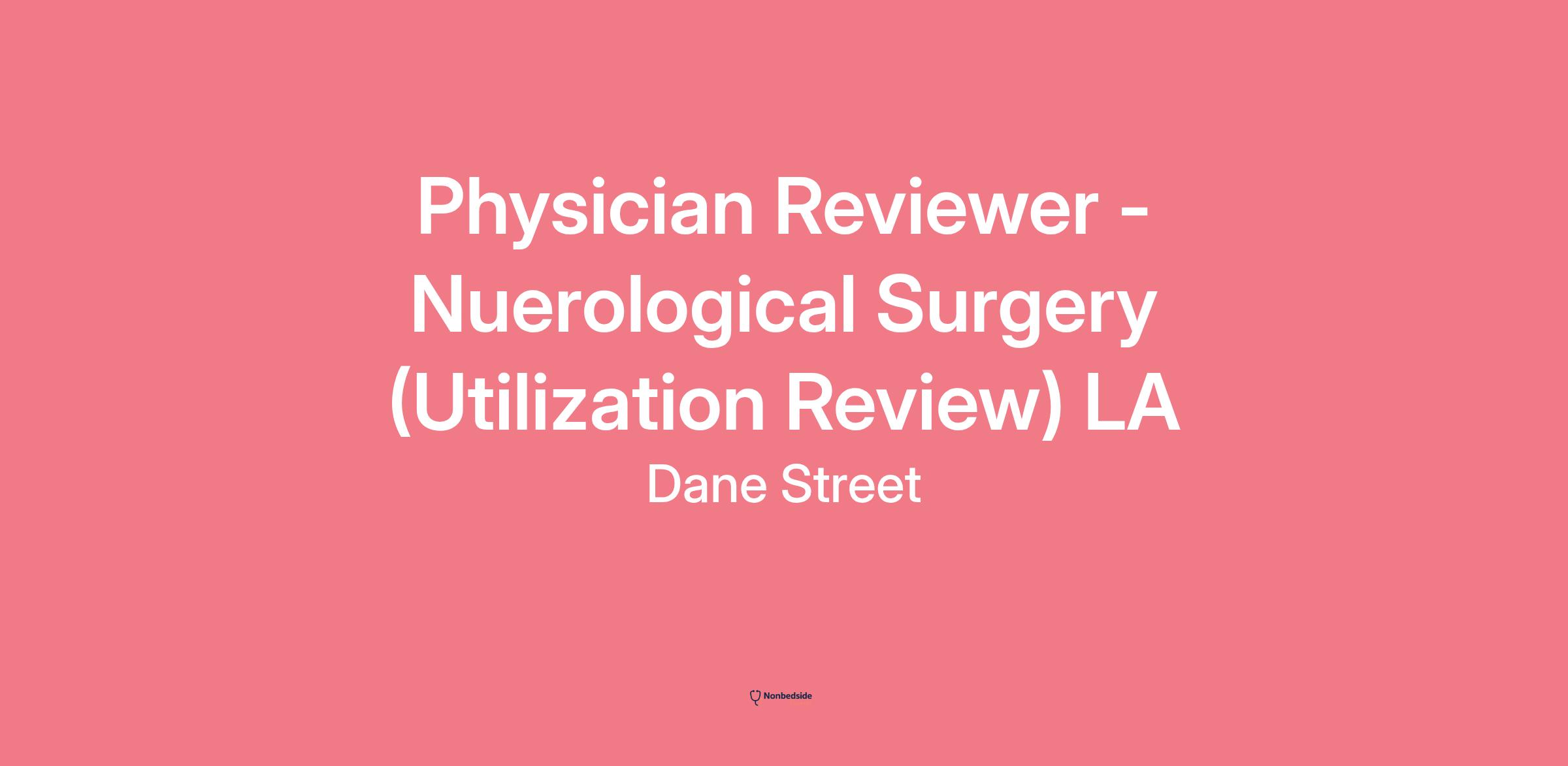Join to apply for the Physician Reviewer - Neurological Surgery (Utilization Review) LA role at Dane Street. This is a telework opportunity for physicians providing a caseload customized to your schedule. The physician panel consists of independent contractors (1099) compensated on a per-case basis.