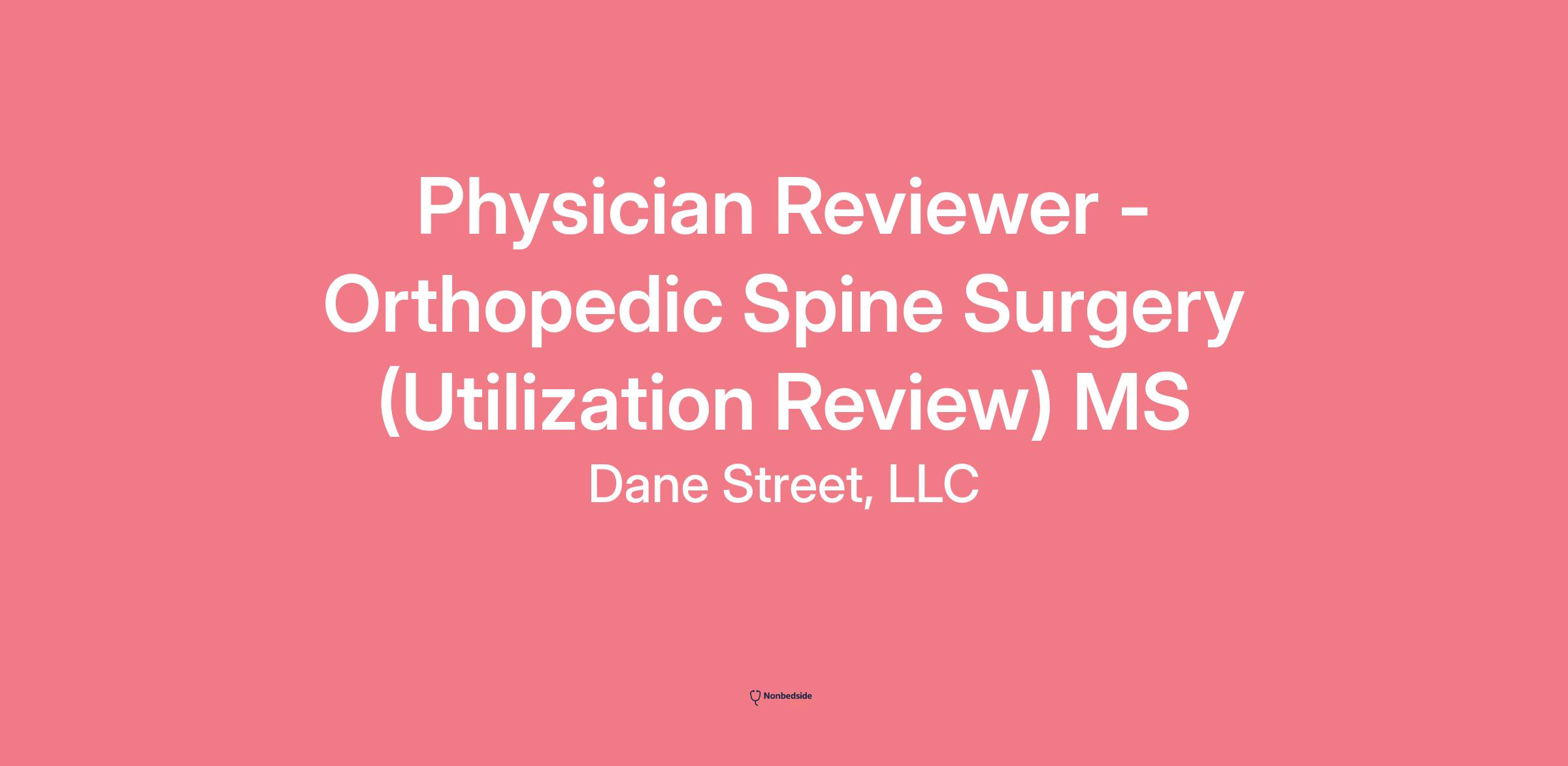 Dane Street, a nationally recognized Independent Review Organization (IRO), is expanding its panel of Physician Reviewers . We are currently seeking Board-Certified Orthopedic Surgeons (Spine experience preferred) licensed in Mississippi to perform Utilization Reviews .