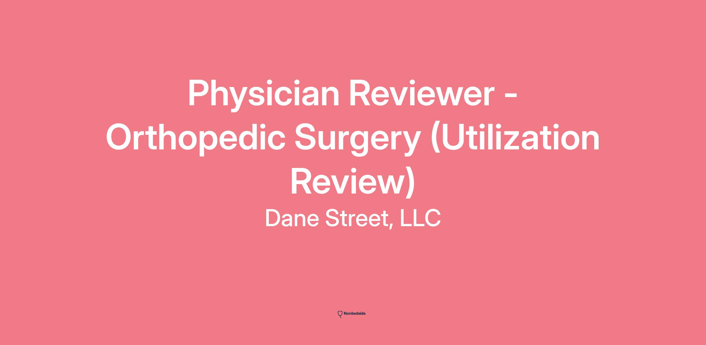 Dane Street, a nationally recognized Independent Review Organization (IRO), is expanding its panel of Physician Reviewers. We are currently seeking Board-Certified Orthopedic Surgeons with an active New York medical license and Workers’ Compensation Board Certification to conduct Utilization Reviews.
