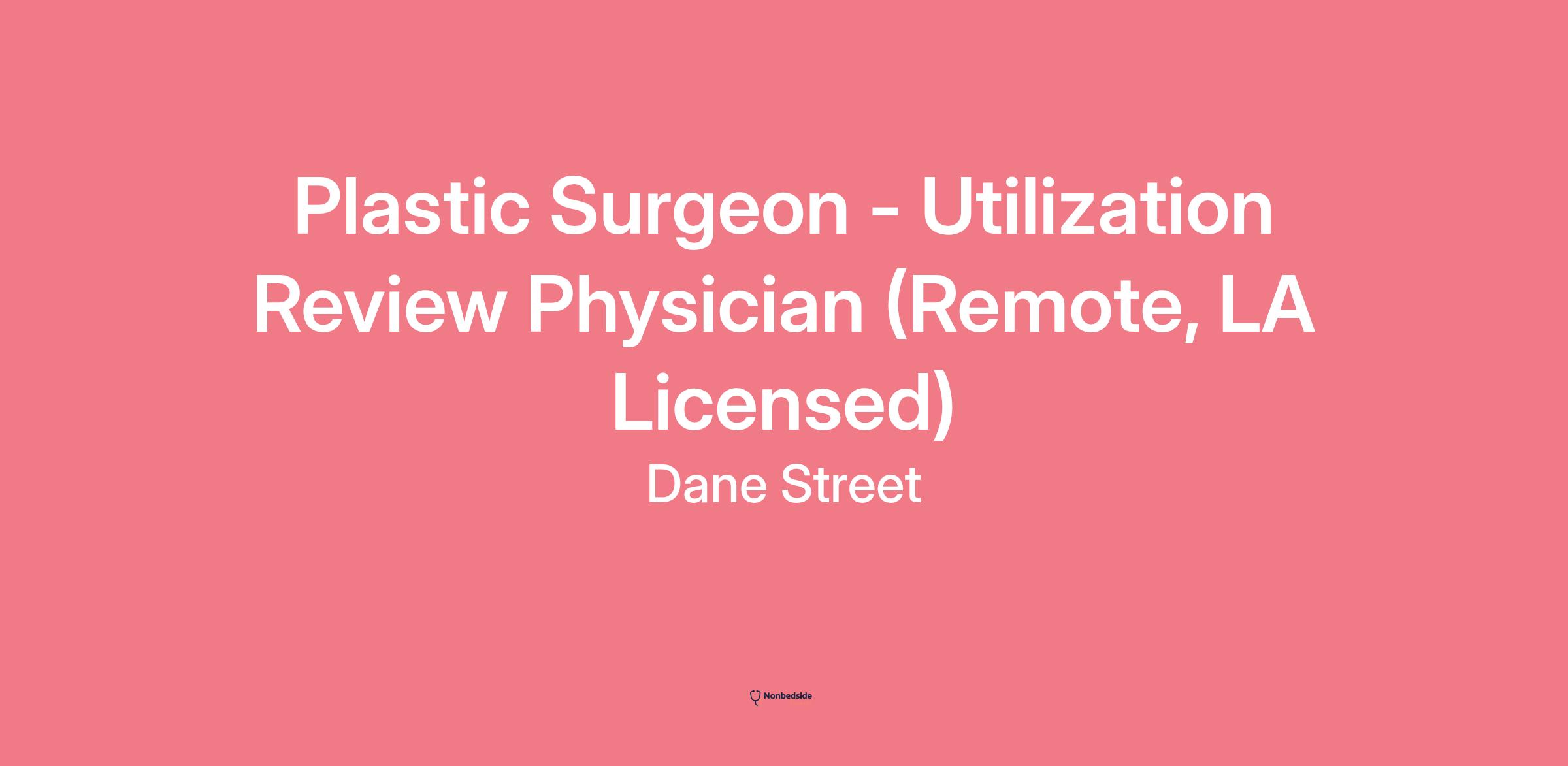 Dane Street, a nationally recognized Independent Review Organization (IRO) and leading provider of Utilization Review (UR) services, is expanding its panel of physician reviewers. We are currently seeking Board-Certified Plastic Surgeons with an active Louisiana medical license to perform Utilization Reviews on a flexible, remote basis. This is a non-clinical, contract opportunity ideal for experienced surgeons interested in earning supplemental income while maintaining their clinical practice.