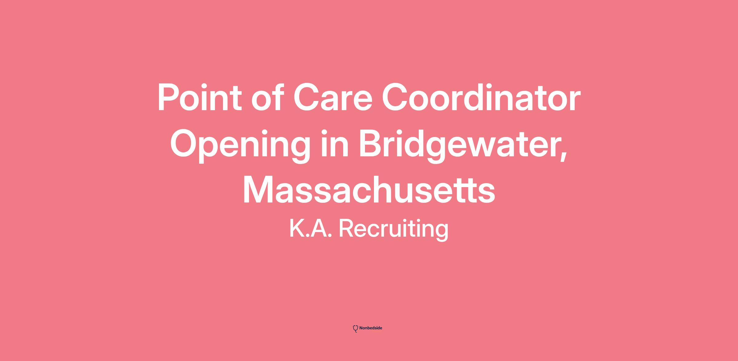 Apply for this position as a Point of Care Coordinator in Bridgewater, Massachusetts for full-time, permanent hire!