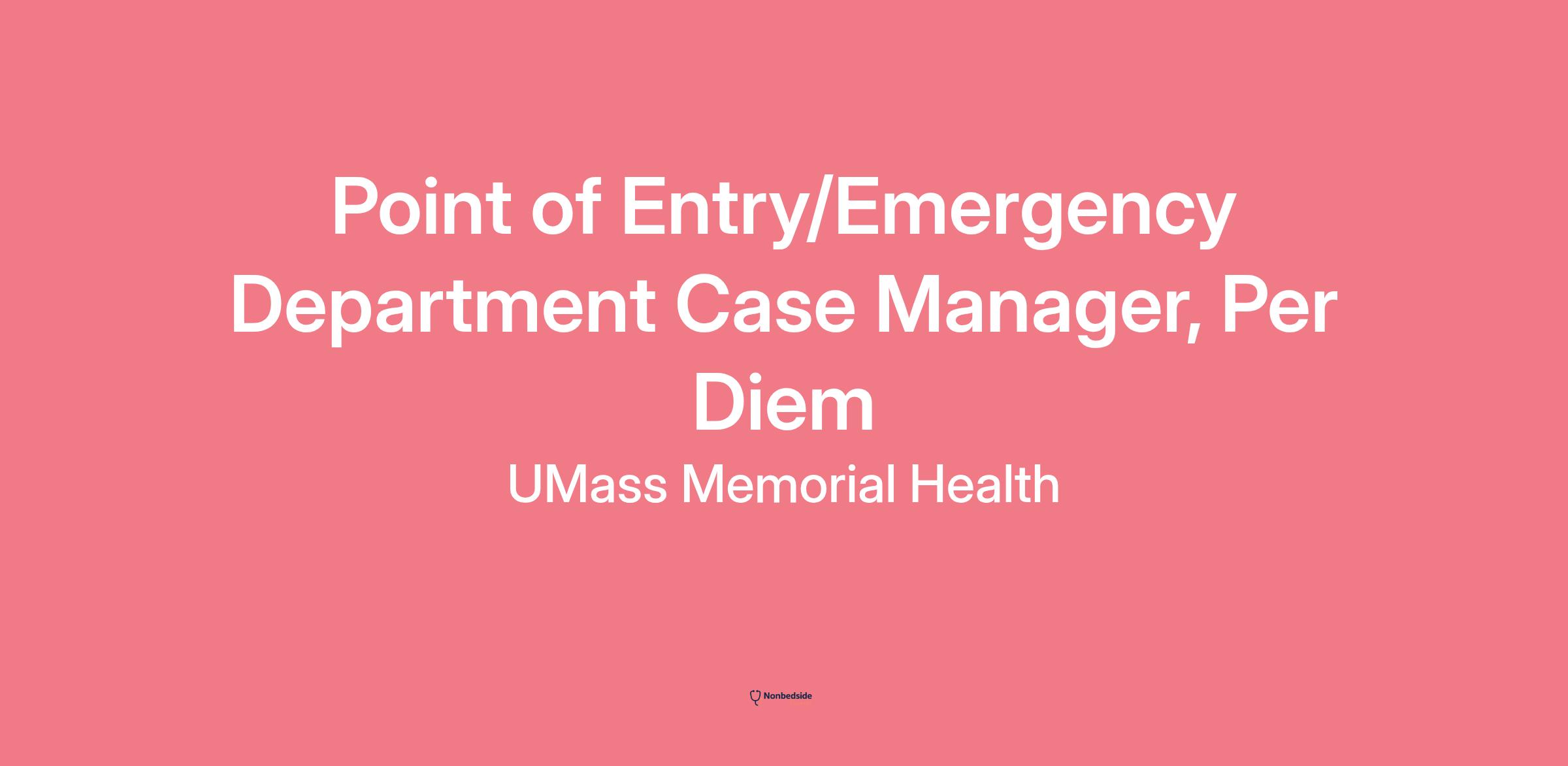In collaboration with other members of the healthcare team, the Point of Entry/Emergency Department Case Manager (POE/ED CM) is accountable for coordination and facilitation of the management of care for ED patients, both inpatient and observation. The POE/ED CM manages patient flow through the ED by evaluating incoming patients and assisting in determining appropriate discharge disposition (Home, Post-acute Services, Inpatient, or Observation). This includes early assessment of discharge needs and communication among healthcare team members and family/caregivers. The POE/ED CM collaborates with admitting teams to ensure correct initial admission status using InterQual criteria.