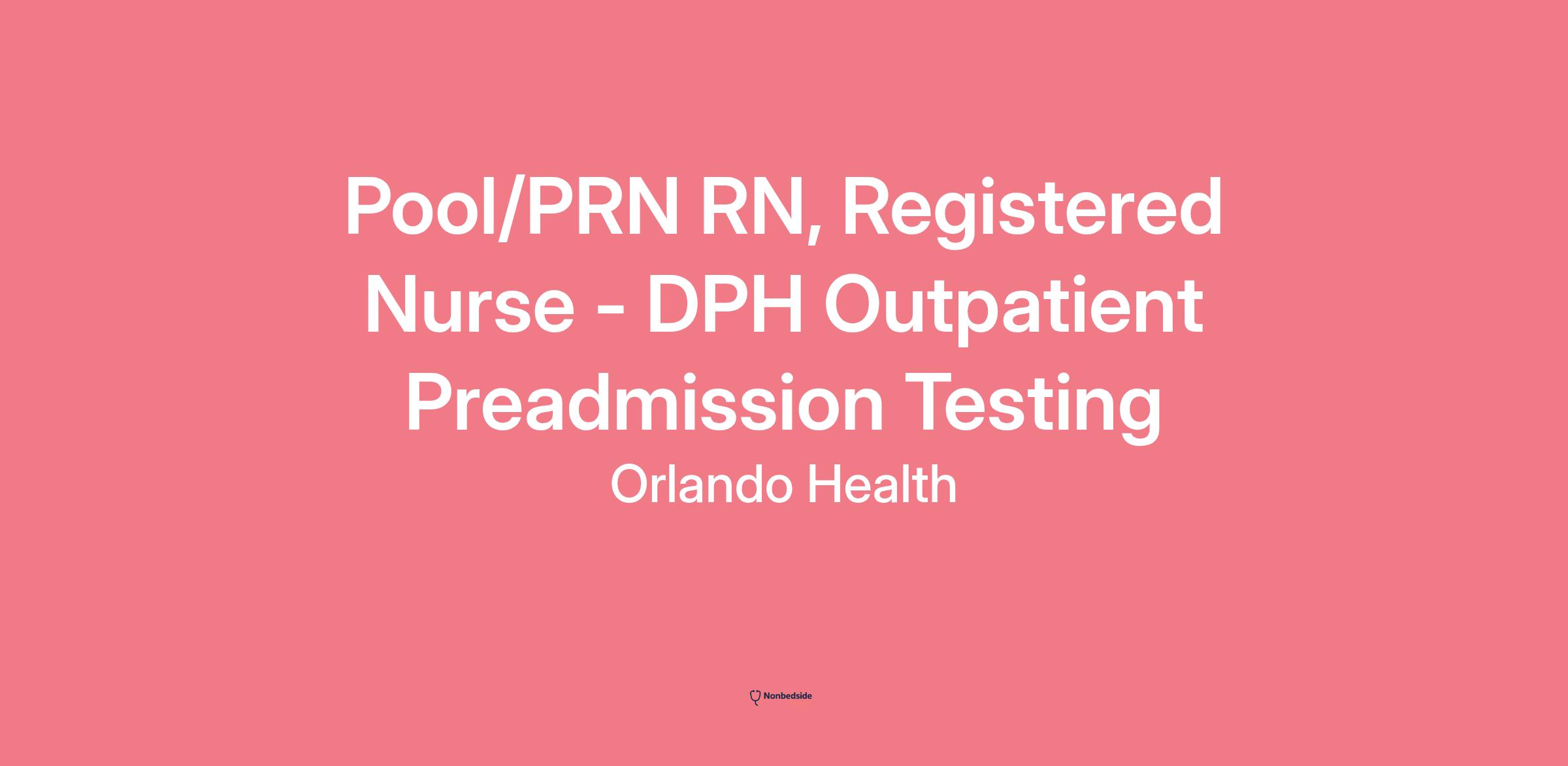 Position Summary Department: Orlando Health Medical Group - Outpatient Preadmission Testing Status: Pool/PRN Shift: As needed basiss - shifts are Monday - Friday, 8am - 6pm Title: RN, Ambulatory Care *Address of Practice: 9400 TURKEY LAKE RD ORLANDO, Florida 32819* *Experience in Surgery, PACU, ENDO, OR/Operating Room, or interoperability preferred* Position Summary The RN in Outpatient Preadmission Testing assesses patients prior to surgery or procedures, reviews medical histories, coordinates required tests, and provides education to patients and families. This role ensures safe, timely, and patient-centered care while collaborating with physicians, anesthesia providers, and the care team to support optimal surgical outcomes. All Inclusive Benefits (start day one) Health/Dental/Vision/Life Insurance, Student loan repayment, tuition reimbursement, FREE college education programs, retirement savings, paid paternity leave, fertility benefits, back up elder and childcare, pet insurance, PTO/Holidays, and more for full time and part time employees. About OHMG Orlando Health Medical Group is a comprehensive physician group serving patients from across the southeastern United States. With more than 200 practices and 1,200 physicians, Orlando Health Medical Group has a strong representation in over 55 specialties, including cardiology, vascular medicine, orthopedics, oncology, digestive health, neurology, neurosurgery, bariatric surgery, general surgery, bone marrow transplant and critical care medicine, as well as more than 30 pediatric subspecialties, women's health, primary care and the largest hospitalist program in Florida. Orlando Health Medical Group is part of the Orlando Health system of care, which includes 24 award-winning hospitals and ERs, 9 specialty institutes, 14 urgent care centers, 100+ primary care practices and more than 60 outpatient facilities that span Florida's east to west coasts and beyond. Collectively, we honor our 100-year legacy by providing care for more than 142,000 inpatient and 3.9 million outpatient visits each year. Responsibilities Essential Functions Utilizesthe unique knowledge, skills, and competenciesrequired in ambulatory care nursing practice to promote wellness, restore health, address health-related situational problems and/or support end-of-life care. Assesses patients' needs and applies current ambulatory care nursing knowledge and evidence-based nursing practice when developing an individualized plan of care for each patient. Demonstratesthe knowledge and skills necessary to provide care appropriate to the age of the patientsserved on assigned unit. Demonstrates knowledge of the principles of growth and development over the life span, assesses the data reflective of the patient'sstatus and interpretsthe necessary information needed to identify each patient'srequirementsrelative to age-specific needs. Prescribes, delegates, coordinates, and documents patient care in a knowledgeable, skillful, and consistent manner. Thisincludes but is notlimited to patient assessment, education, medication administration, treatments, and patientsafety. Demonstrates competency in nursing skills and use of patient care/unit equipment as defined by unit-specific requisite skills. Prioritizes patient care in an ongoing manner in accordance with Evidence-Based Practice Standards of Care. Practices effective problem identification and resolution. Delegatestasks and dutiesto healthcare team membersin accordance with the patient's needs and the team member's capabilities and qualifications. Communicates appropriate information regarding patient condition or unit concernsto other health care team members. Maintains a safe and caring environment for both patients and family. Integrates patient and family education throughoutthe delivery of care. Participatesin ProcessImprovement activities as assigned. Demonstrates awareness oflegal issues, patients' rights and compliance with the standards ofregulatory and accrediting agencies. Maintainsreasonably regular, punctual attendance consistent with Orlando Health policies, the ADA, FMLA, and other federal, state, and local standards. Maintains compliance with all Orlando Health policies and procedures. Qualifications Education/Training Graduate of an approved school of nursing. Meets all mandatory, developmental, and performance competency requirementsfor Orlando Health and unit/department. Licensure/Certification Maintains current licensure as a registered nurse in the State of Florida or Nurse Licensure Compact (NLC). Maintains current BLS/Healthcare Provider certification. ACLS, NRP, PALS, TNCC are required for certain areas. Experience 1 year experience required unless approved by AVP level or above