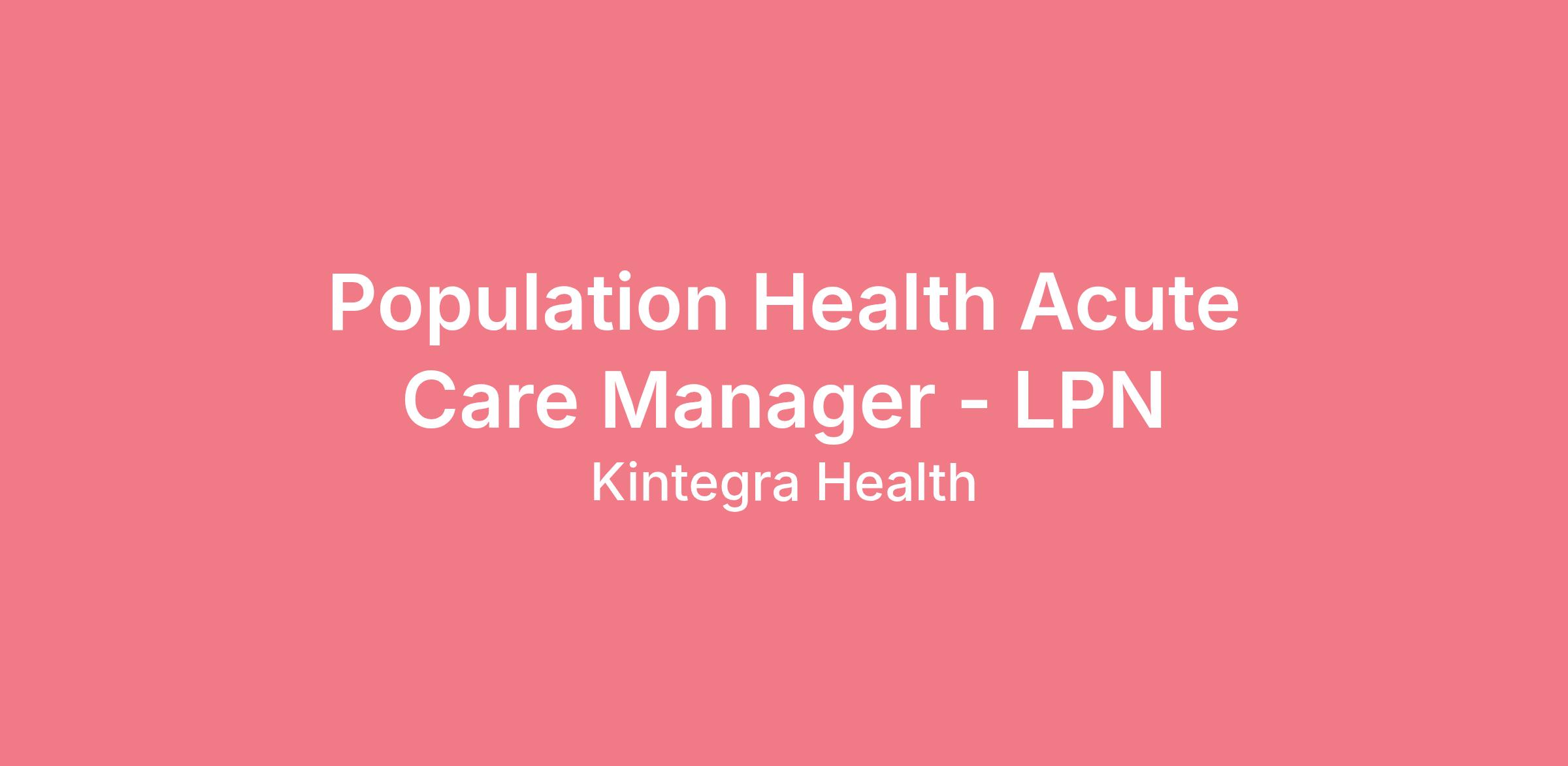 Population Health Acute Care Manager - LPN