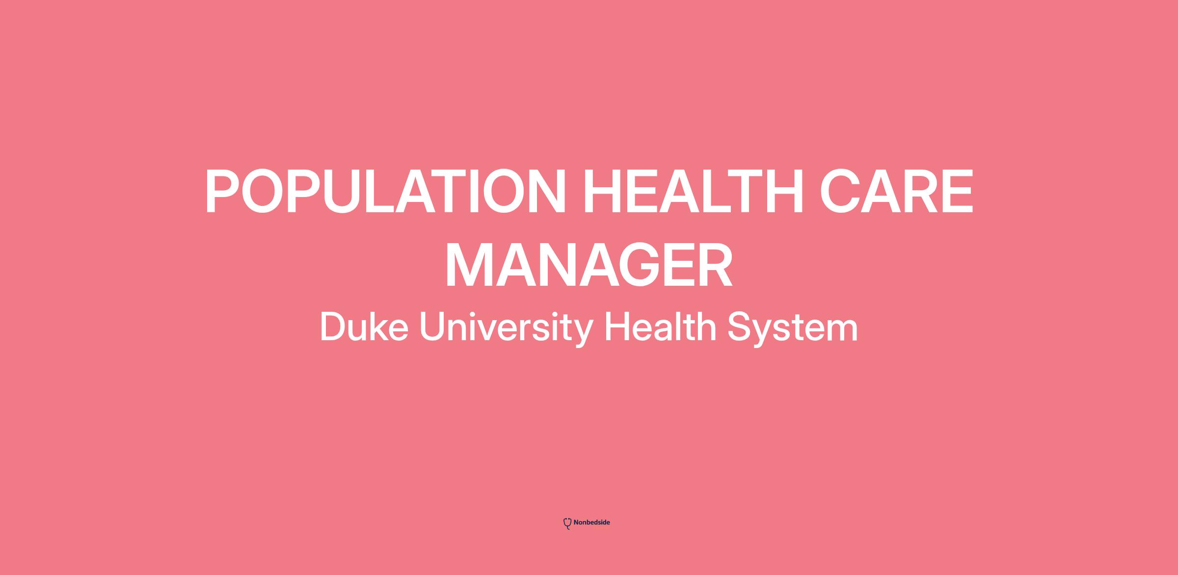 General Description of the Job Class The Population Health Care Manager is responsible for delivering clinical expertise to manage health care needs of specific patient populations across the continuum of care with a goal of improving patient health outcomes and reducing unnecessary utilization and cost. This role functions as an integral part of an interdisciplinary team and a patient\u2019s care team to optimize clinical outcomes through a seamless model of transitions, access, and care. This role focuses on improving the health status and connection to resources, preventive care, hospital follow-up, and ongoing healthcare for individuals with chronic health conditions as well as addressing frequent hospital and emergency department utilization, and medical, behavioral health, and psychosocial needs by performing care management and care coordination functions in a variety of settings that include a patient\u2019s home, community, and clinic.