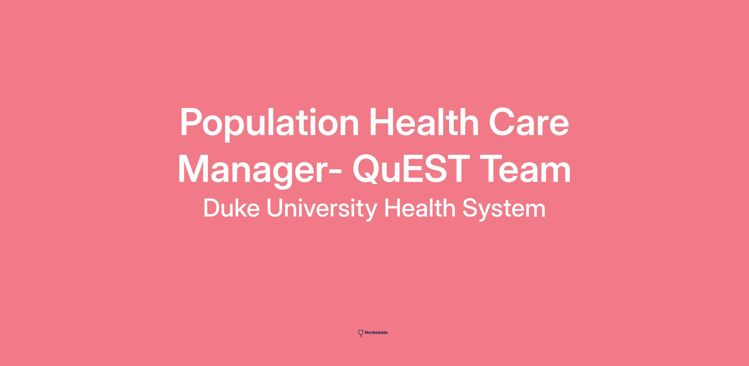 Join to apply for the Population Health Care Manager – QuEST Team role at Duke University Health System .