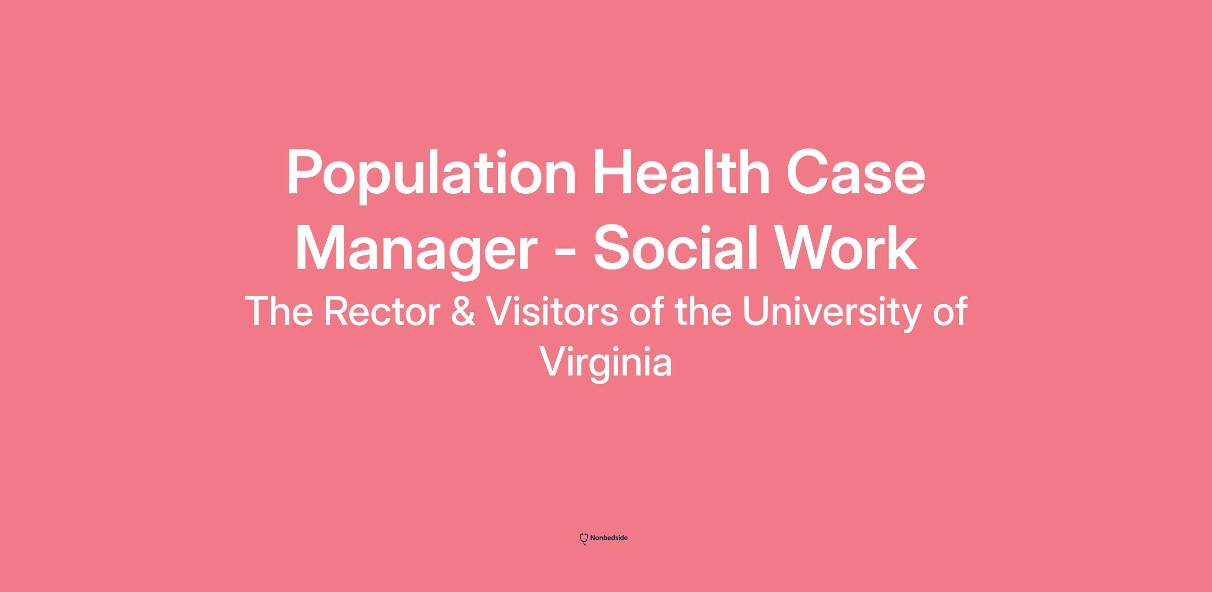 Overview The Population Health Case Manager plays a key role in patient progression at UVA Health. Responsibilities include reviewing patient charts, scheduling appointments, calling patients weekly, conducting screenings, and connecting patients with community resources. This role involves interacting with patients telephonically, collaborating with healthcare teams, emergency room and clinical care teams, and external partners. The position delivers comprehensive care coordination, aiming to enhance patient outcomes and elevate the overall quality of healthcare services. Committed to VDH (Virginia Department of Health) standards, they collaborate with healthcare teams for a patient-centered approach, contributing to holistic and efficient healthcare experiences.