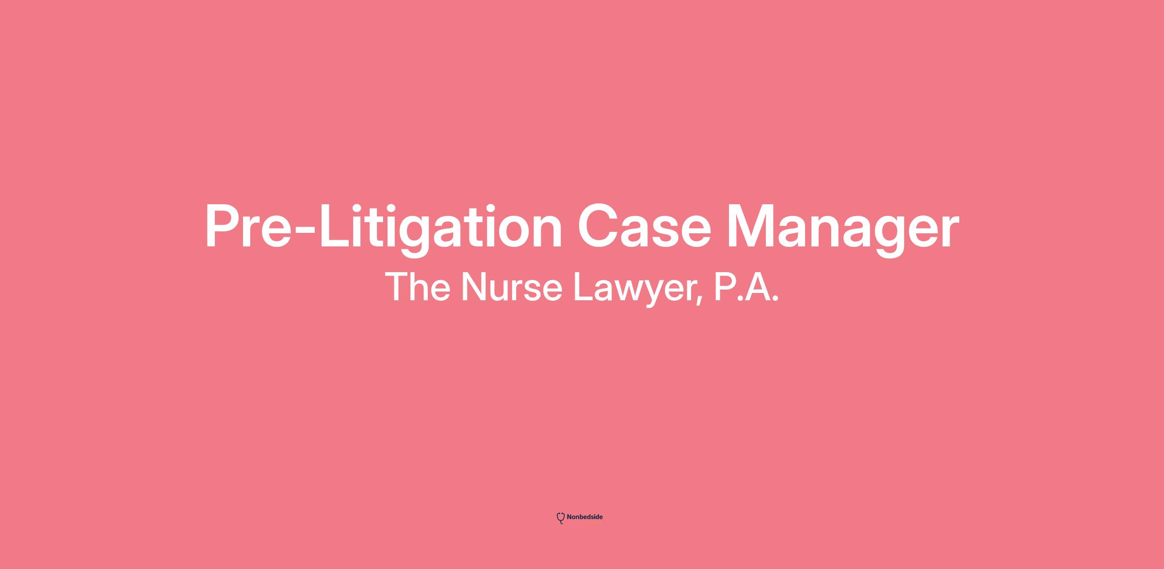 Join to apply for the Pre–Litigation Case Manager role at The Nurse Lawyer, P.A.