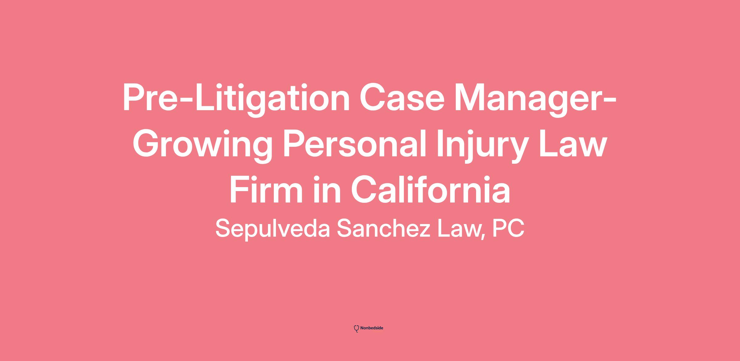 We are a growing personal injury law firm based in California, and we are seeking a self-motivated Pre-Litigation Case Manager to join our team. As a Case Manager, you will ensure the smooth running of the office and effective case management. You will provide a broad spectrum of legal services under the supervision of an attorney. If you are passionate about making a difference in people's lives and want to work in a fast-paced and dynamic environment, then this opportunity is perfect for you.