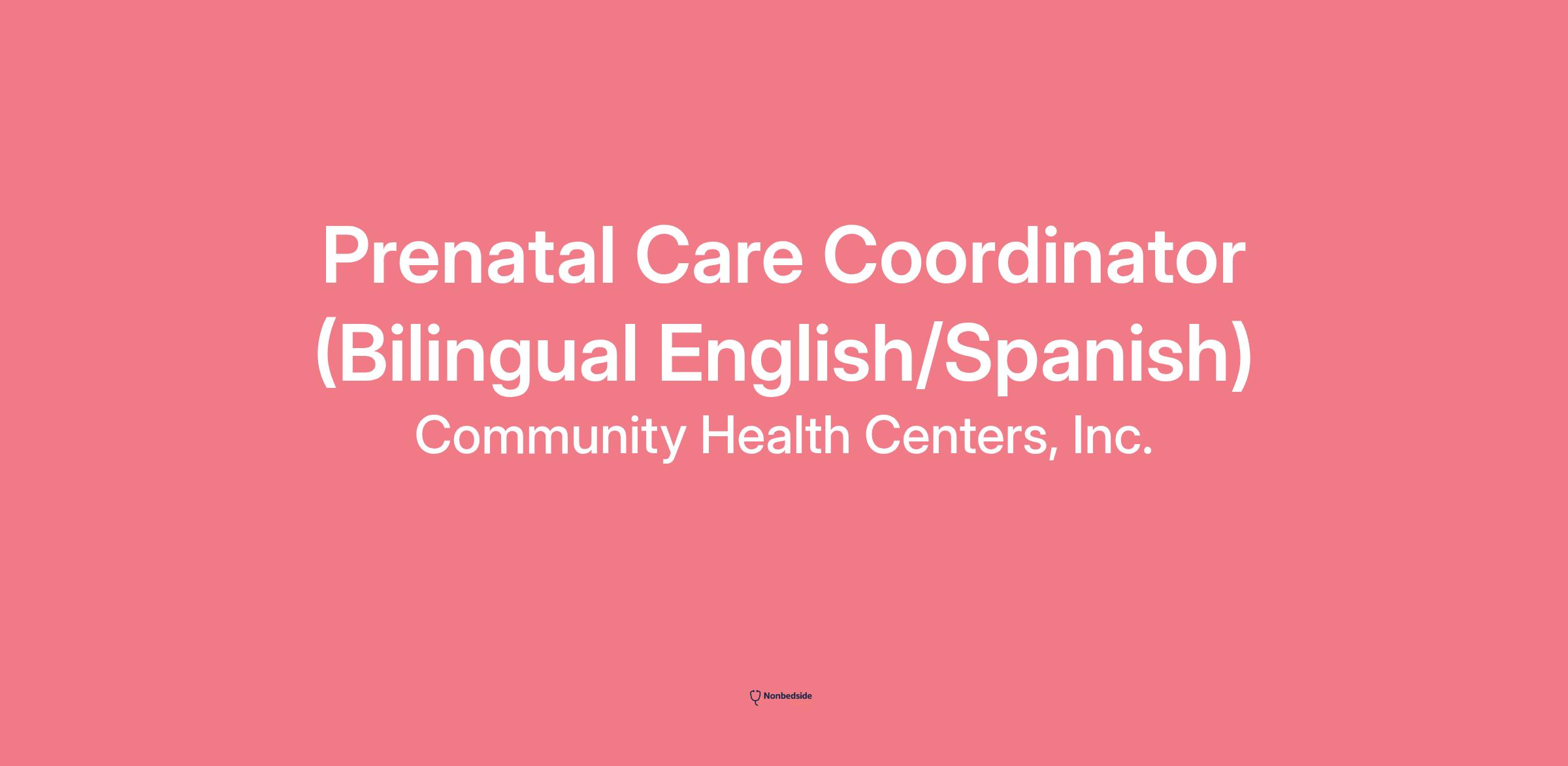 Join to apply for the Prenatal Care Coordinator (Bilingual English/Spanish) role at Community Health Centers, Inc.