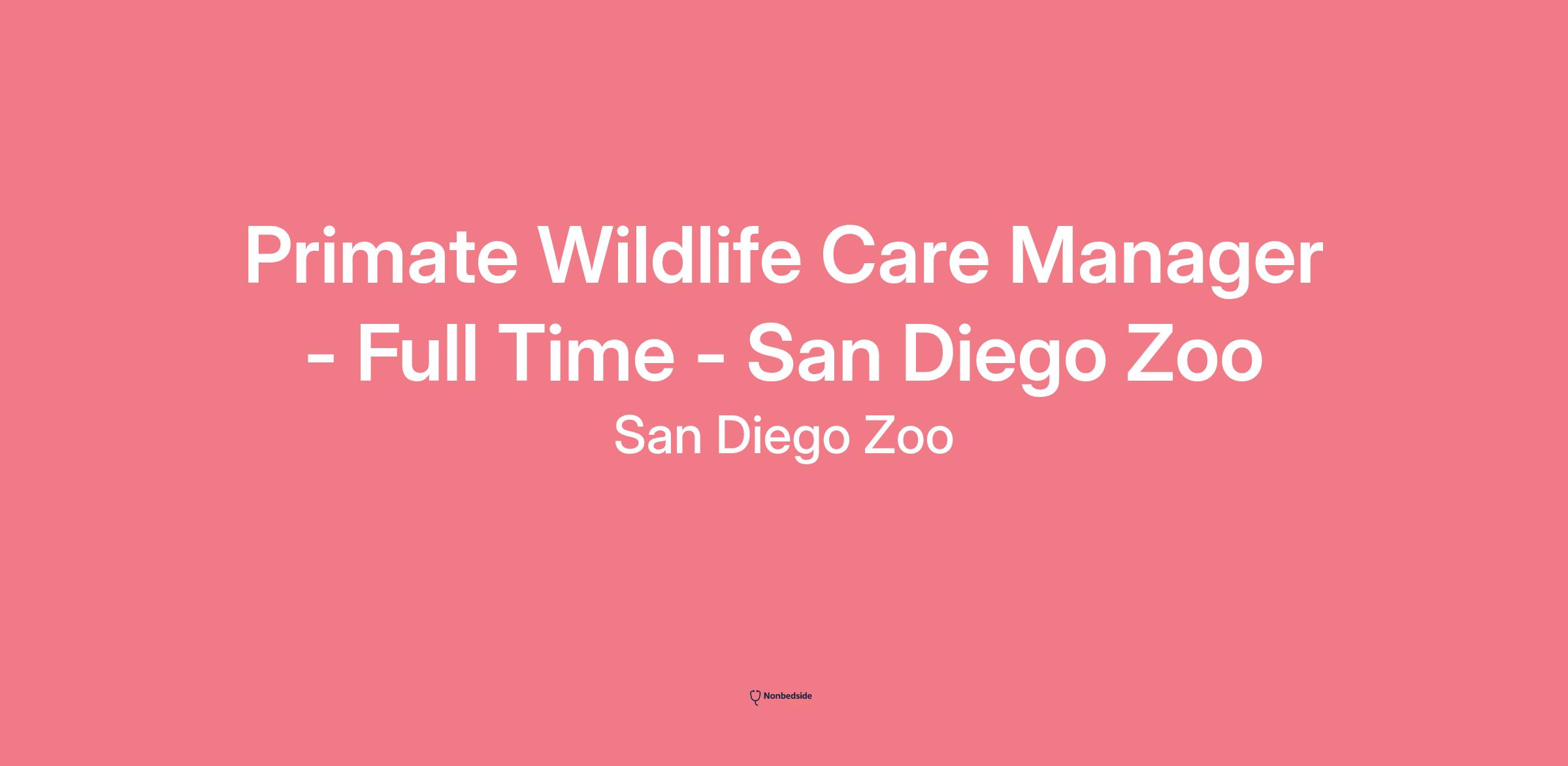 Primate Wildlife Care Manager - Full Time - San Diego Zoo Job Description San Diego Zoo Wildlife Alliance is a nonprofit international conservation leader, committed to inspiring a passion for nature and creating a world where all life thrives. Empowering people from around the globe to support our mission to conserve wildlife through innovation and partnerships, we support cutting-edge conservation, and bring the stories of our work back to our two world-famous front doors — the San Diego Zoo and San Diego Zoo Safari Park — giving millions of guests, in person and virtually, the opportunity to experience conservation in action. The deep and extensive knowledge gained from more than a century of experience in wildlife care, health, veterinary services, nutrition and conservation makes us invaluable in the global effort to save species. Our team members play a crucial role in driving our conservation efforts forward and bringing us closer to a world where all life thrives.