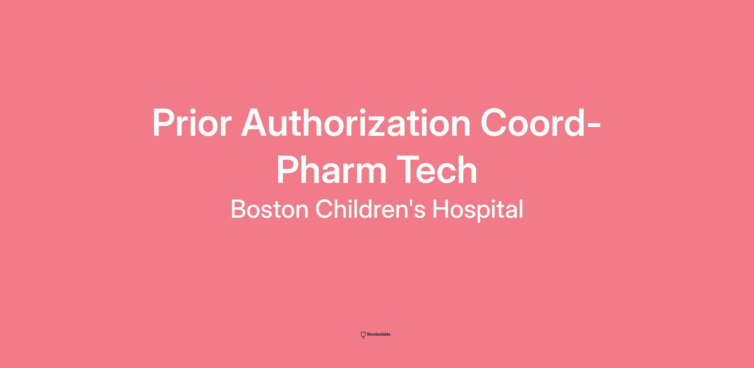 Join to apply for the Prior Authorization Coord-Pharm Tech role at Boston Children's Hospital