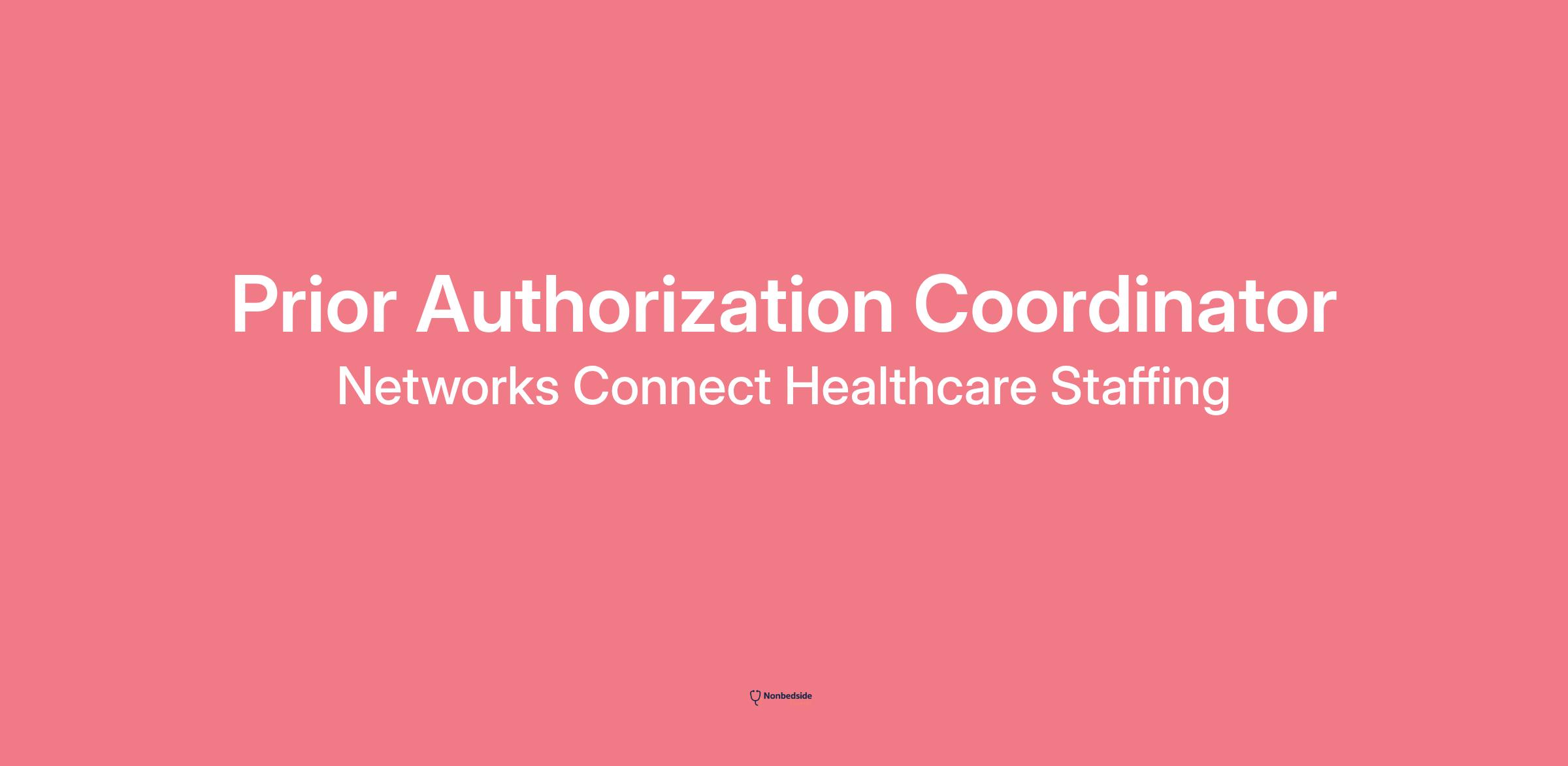 Networks Connect is conducting a search on behalf of our client, a prominent healthcare system , for a detail-oriented and mission-driven Prior Authorization Coordinator . This is an exciting opportunity to join a leading patient access team and play a key role in facilitating timely, barrier-free access to healthcare services.