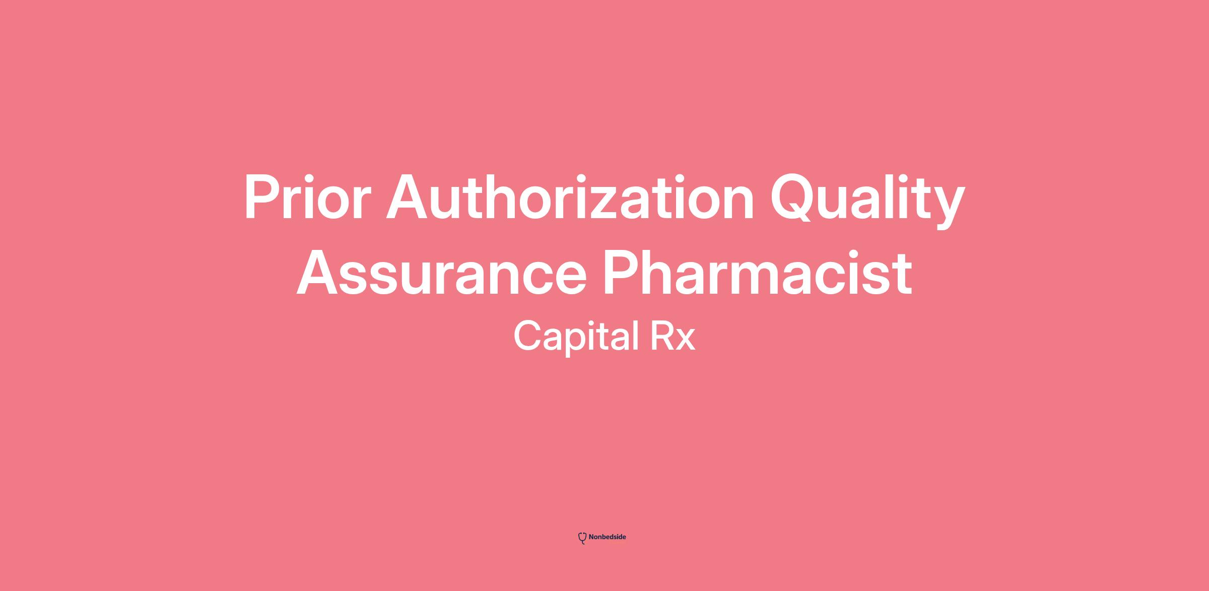 Prior Authorization Quality Assurance Pharmacist Join to apply for the Prior Authorization Quality Assurance Pharmacist role at Capital Rx