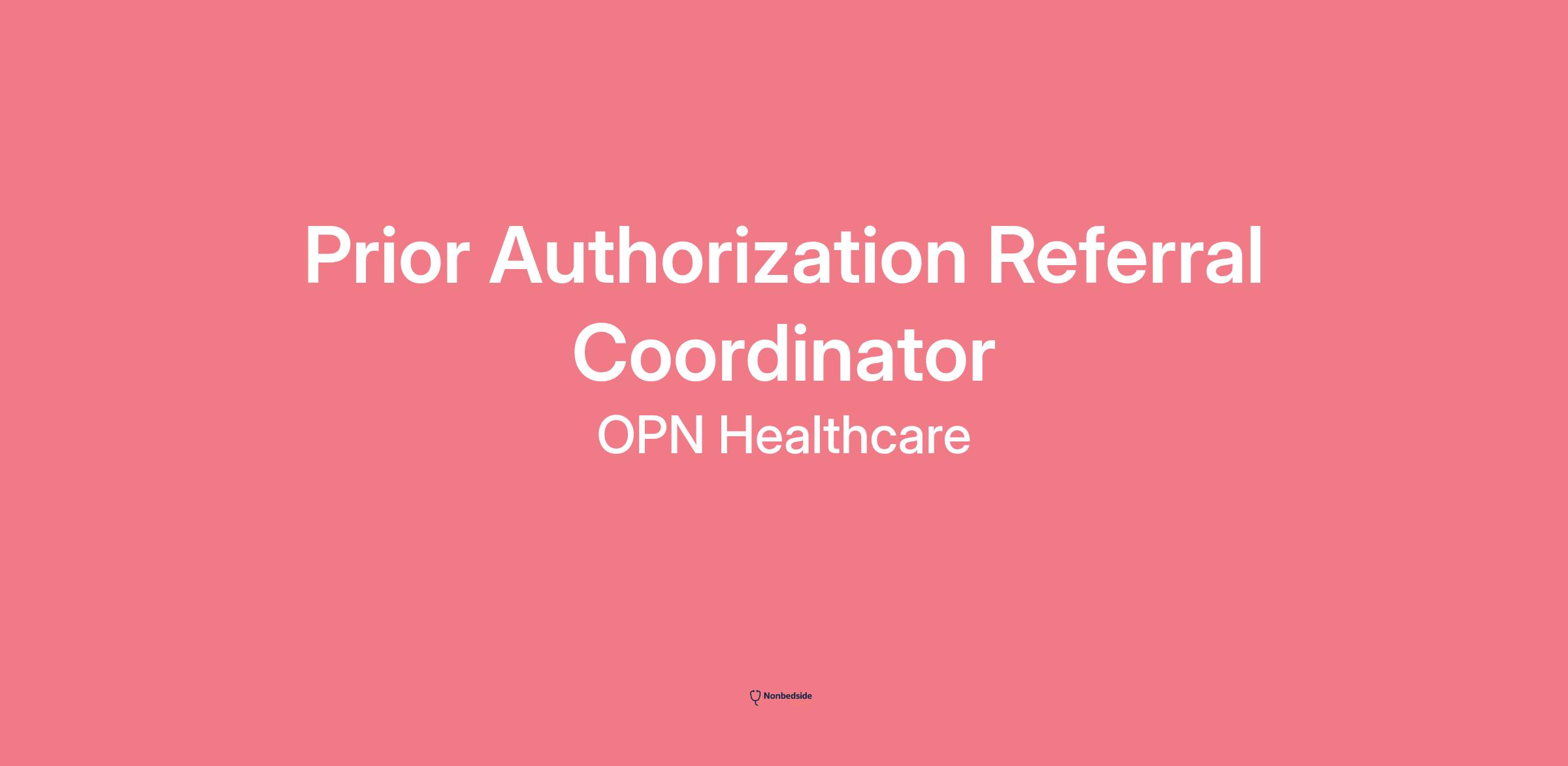 Overview OPN is seeking a highly organized and proactive Prior Authorization & Referral Coordinator to join our clinical and care coordination teams. The ideal candidate will play a critical role in ensuring seamless and compliant authorization and referral processes, contributing to optimized patient care and operational efficiency. This position requires strong attention to detail, excellent communication skills, and a collaborative approach to problem-solving.