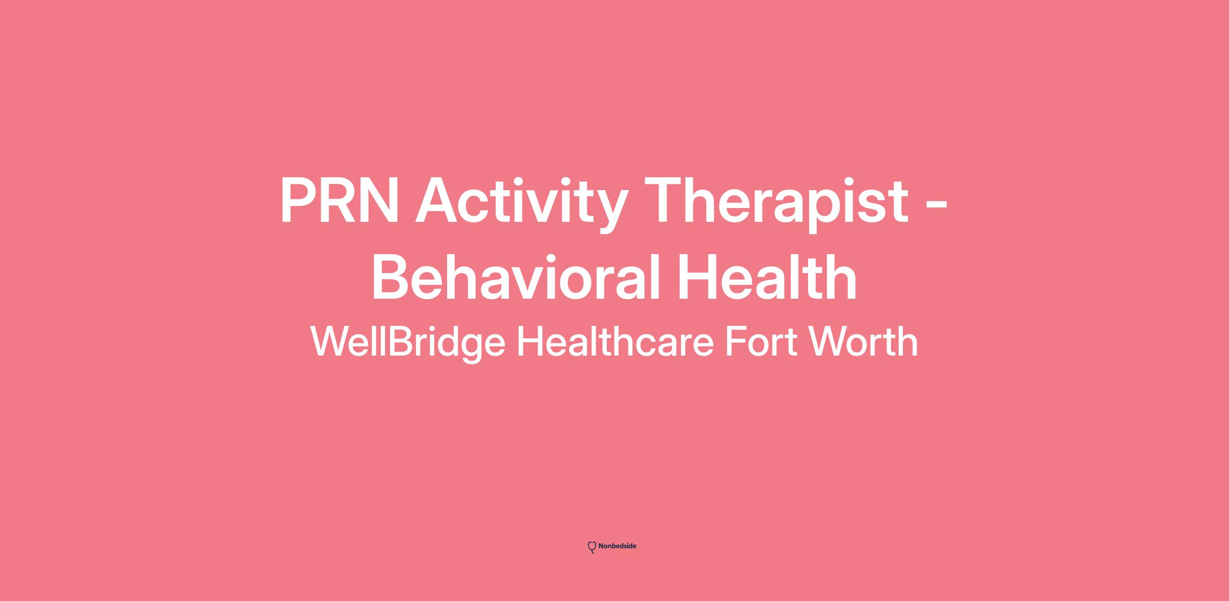 WellBridge Healthcare Fort Worth is part of Lifepoint Health, a diversified healthcare delivery network with facilities coast to coast. We are driven by a profound commitment to prioritize your well-being so you can provide exceptional care to others. As an Activity Therapist joining our team, you're embracing a vital mission dedicated to making communities healthier ®. Join us on this meaningful journey where your skills, compassion and dedication will make a remarkable difference in the lives of those we serve.