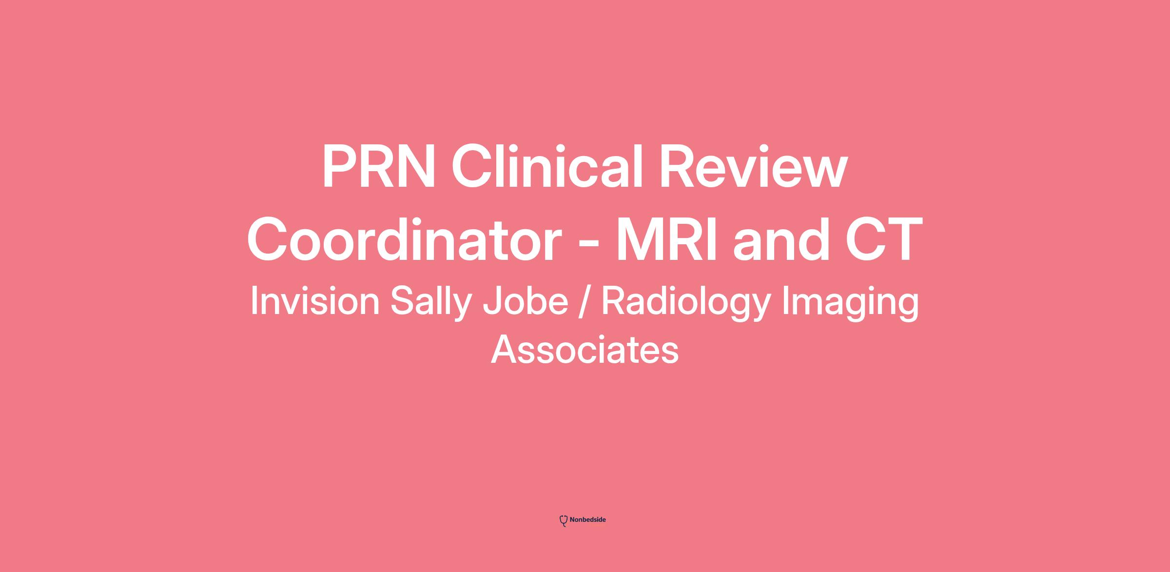PRN Clinical Review Coordinator - MRI and/or CT Join to apply for the PRN Clinical Review Coordinator - MRI and/or CT role at Invision Sally Jobe / Radiology Imaging Associates
