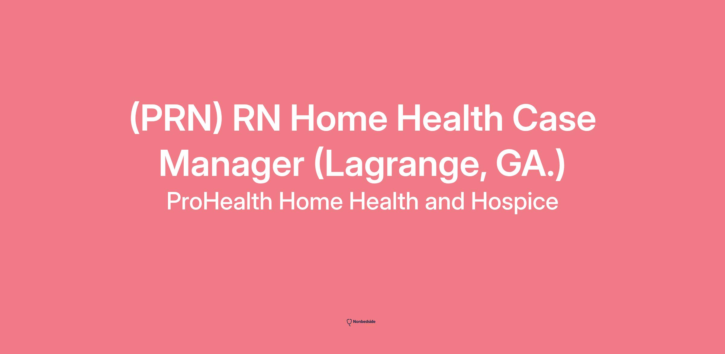 Join to apply for the (PRN) RN Home Health Case Manager (Lagrange, GA.) role at ProHealth Home Health and Hospice
