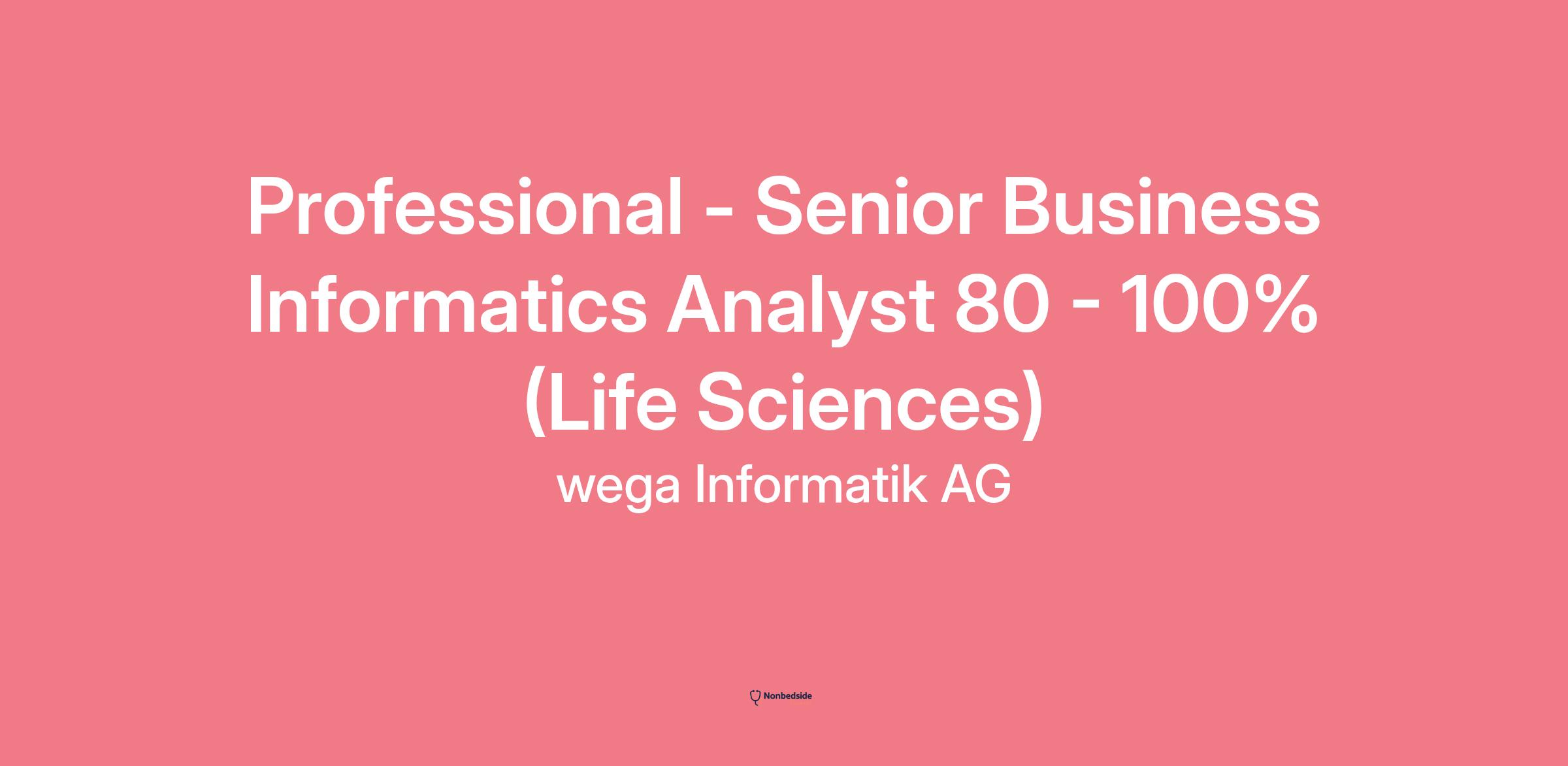 Professional - Senior Business Informatics Analyst 80 - 100% (Life Sciences) Part-Time in Germany - Hybrid (Remote and In Person) - Mid Level