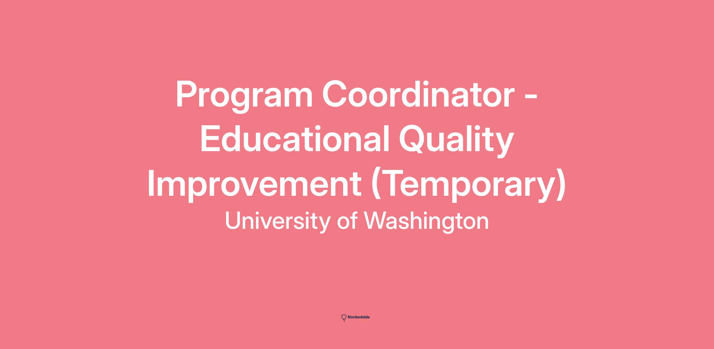 Program Coordinator - Educational Quality Improvement (Temporary) Join to apply for the Program Coordinator - Educational Quality Improvement (Temporary) role at University of Washington .