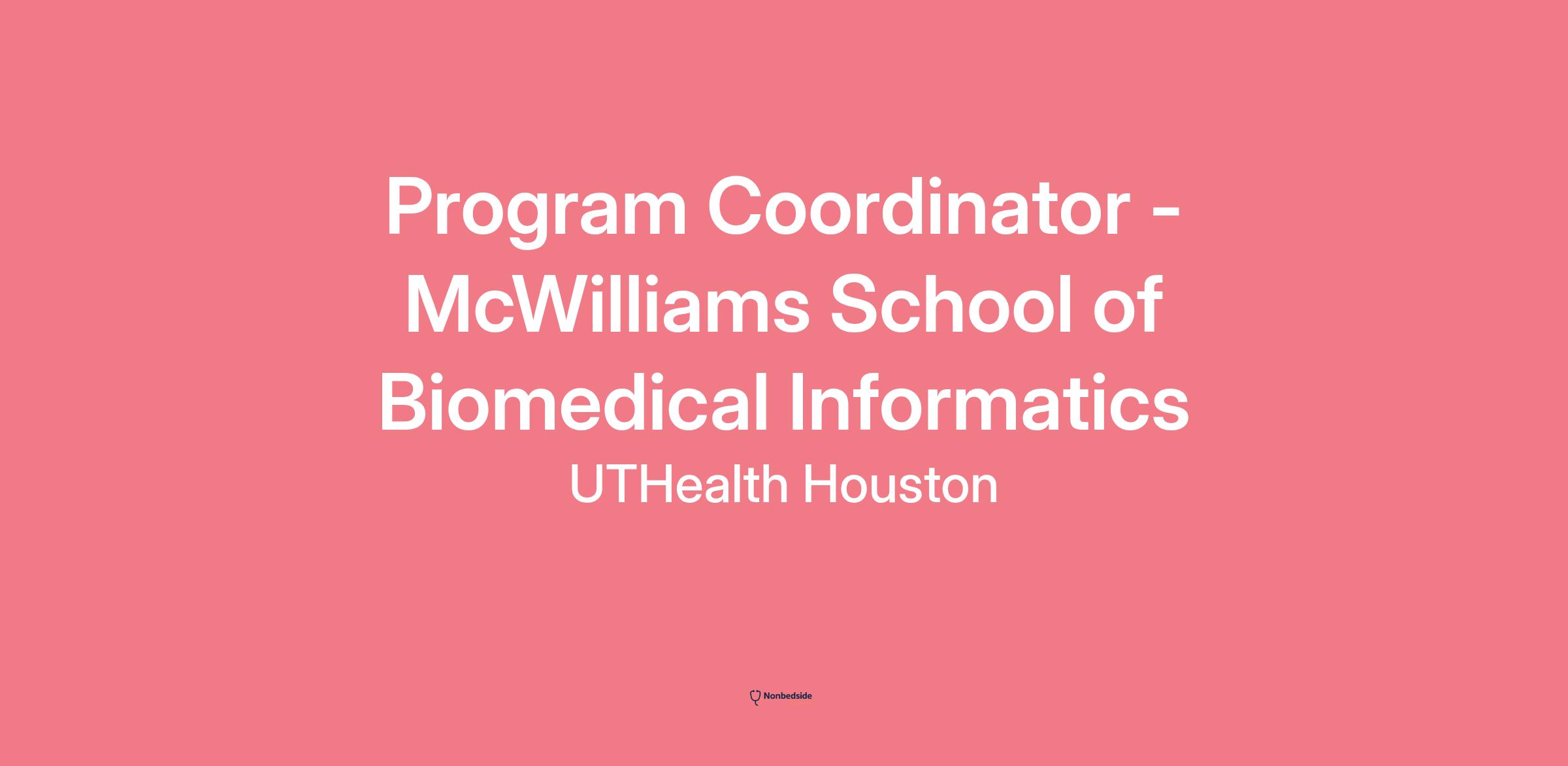 Join to apply for the Program Coordinator - McWilliams School of Biomedical Informatics role at UTHealth Houston. We are hiring immediately to support the Syed Lab in the McWilliams School of Biomedical Informatics, Houston, TX, offering assistance with the overall design, execution & management of public education, course support and outreach programs.