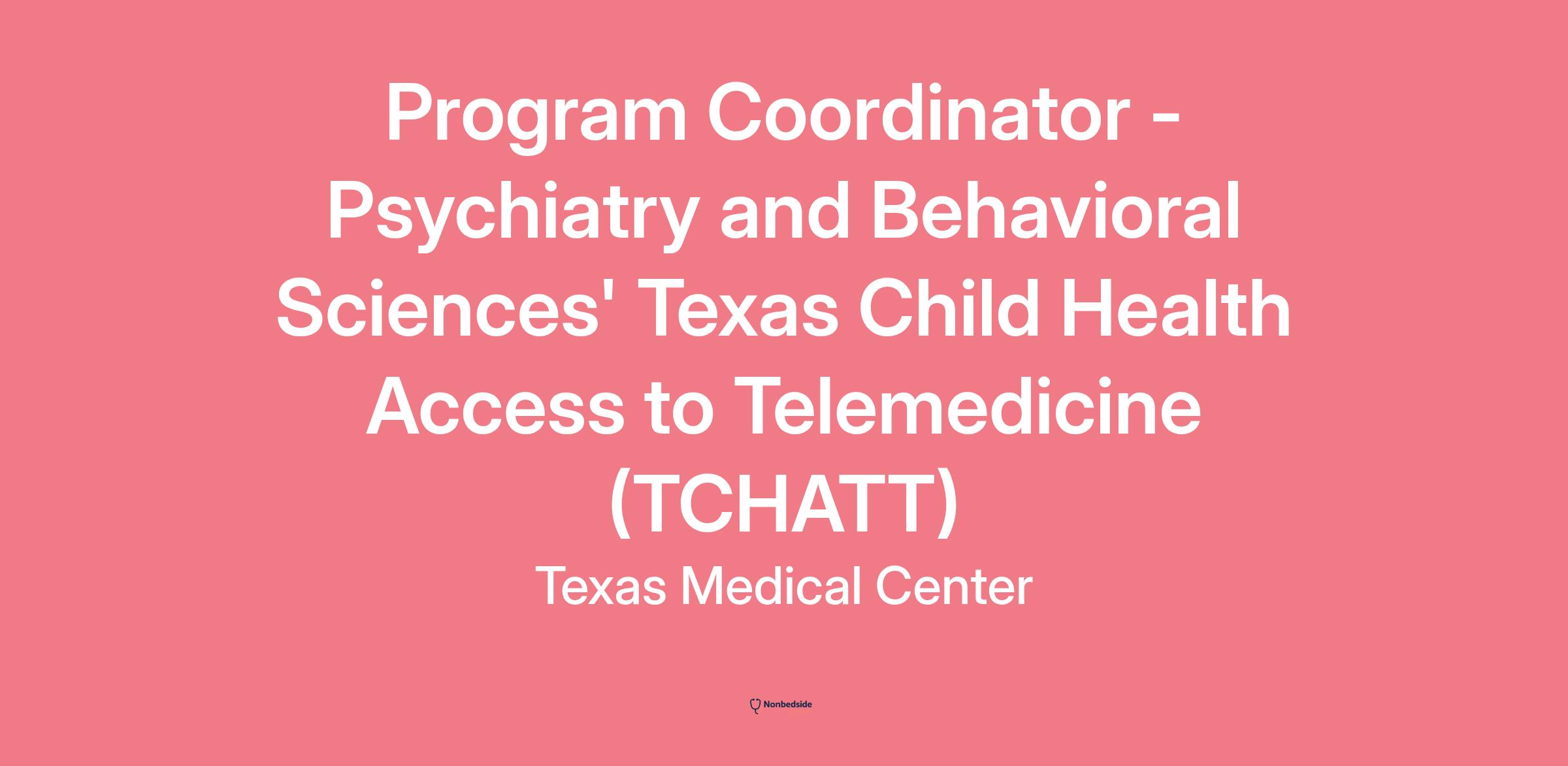 The Program Coordinator in the Texas Child Health Access to Telemedicine (TCHATT) Program is responsible for all outreach to ensure the achievement of assigned TCMHCC goals and objectives. Outreach includes monthly marketing to schools, virtual meetings, phone conferences, in person presentations and events, and must be comfortable with a flexible work schedule that can include some weekends and evenings.
