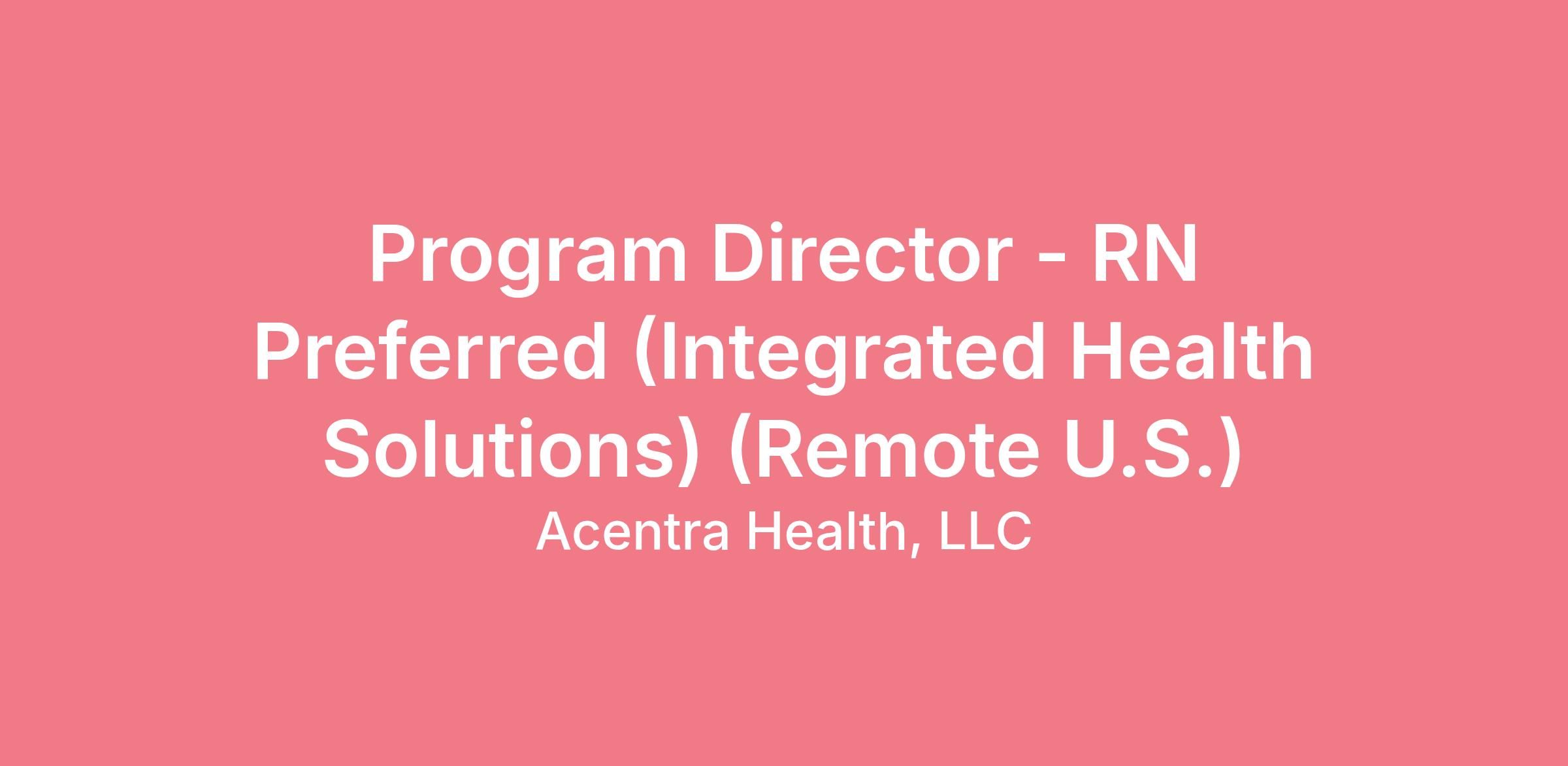 Acentra Health is looking for a Program Director - RN Preferred - Full-time (Integrated Health Solutions) - Remote U.S. to join our growing team.