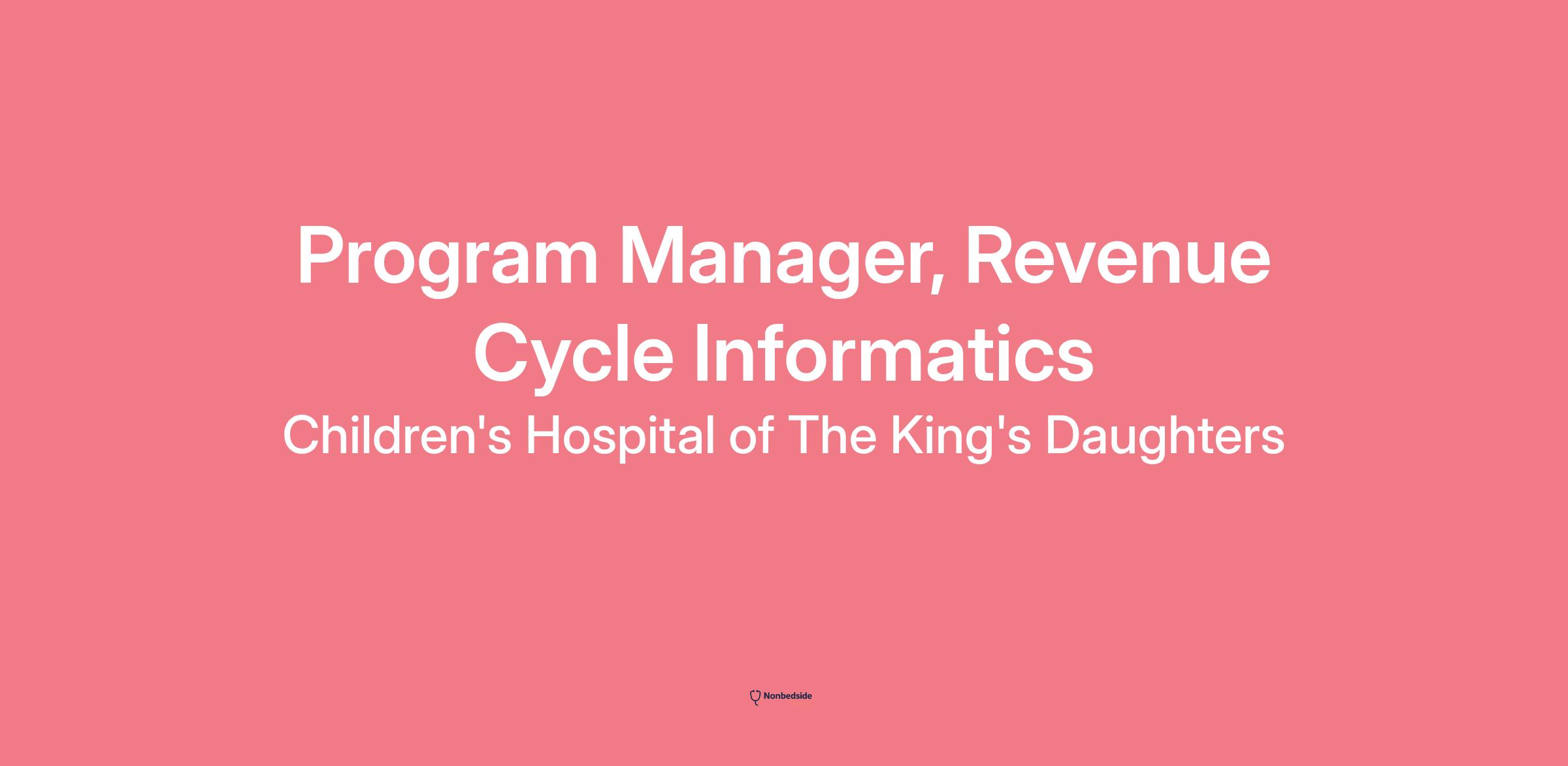 GENERAL SUMMARY The Program Manager of Revenue Cycle Informatics is responsible for leading and coordinating strategic initiatives that enhance the integration, optimization, and performance of revenue cycle systems and related data analytics. The Program Manager leads work efforts for optimizing system workflows, templates, and data integrity to drive continuous improvement, user engagement, and organizational alignment with CHKD’s mission and strategic goals. This role bridges clinical, operational, and technical teams to ensure that informatics solutions support efficient, compliant, and patient-centered revenue cycle operations. Reports to department leadership.