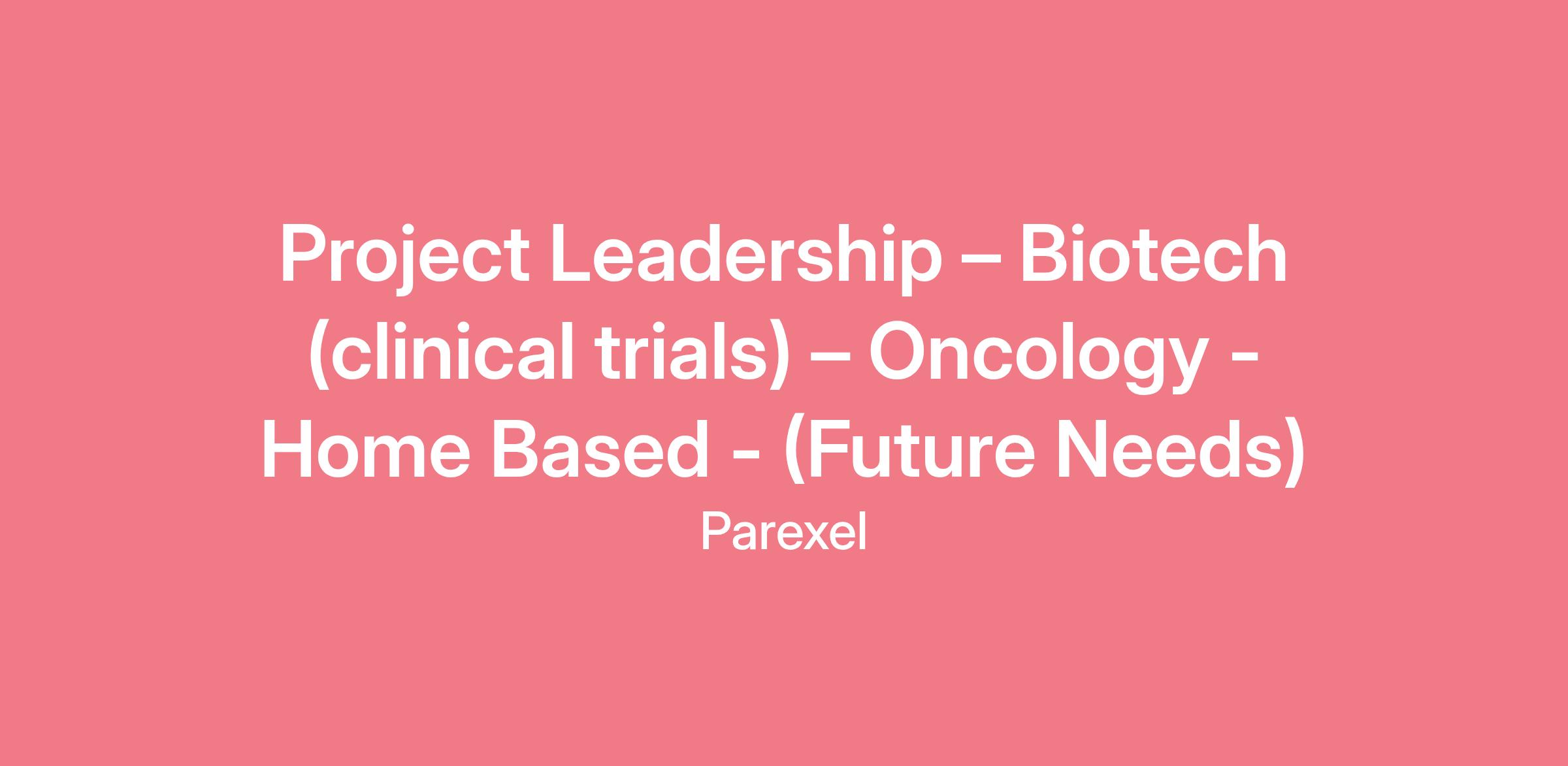 Parexel’s defined Biotech Division offers opportunities for seasoned Project Management professionals with a strong background running global clinical trials in a variety of therapeutics. This group focuses specifically on Biotech clients and providing all areas of support to accommodate their unique needs. This is a great opportunity for those in the industry who prefer the flexibility, creatively and problem-solving mindset to successfully support this type of clients.