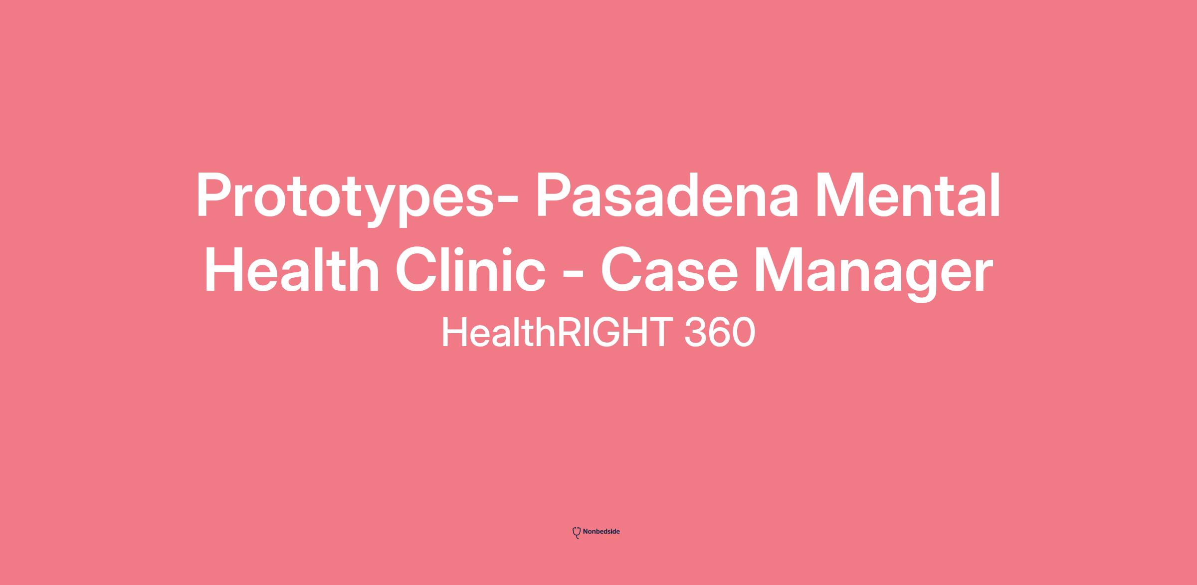 Prototypes- Pasadena Mental Health Clinic - Case Manager Job Description Posted Friday, July 25, 2025 at 7:00 AM