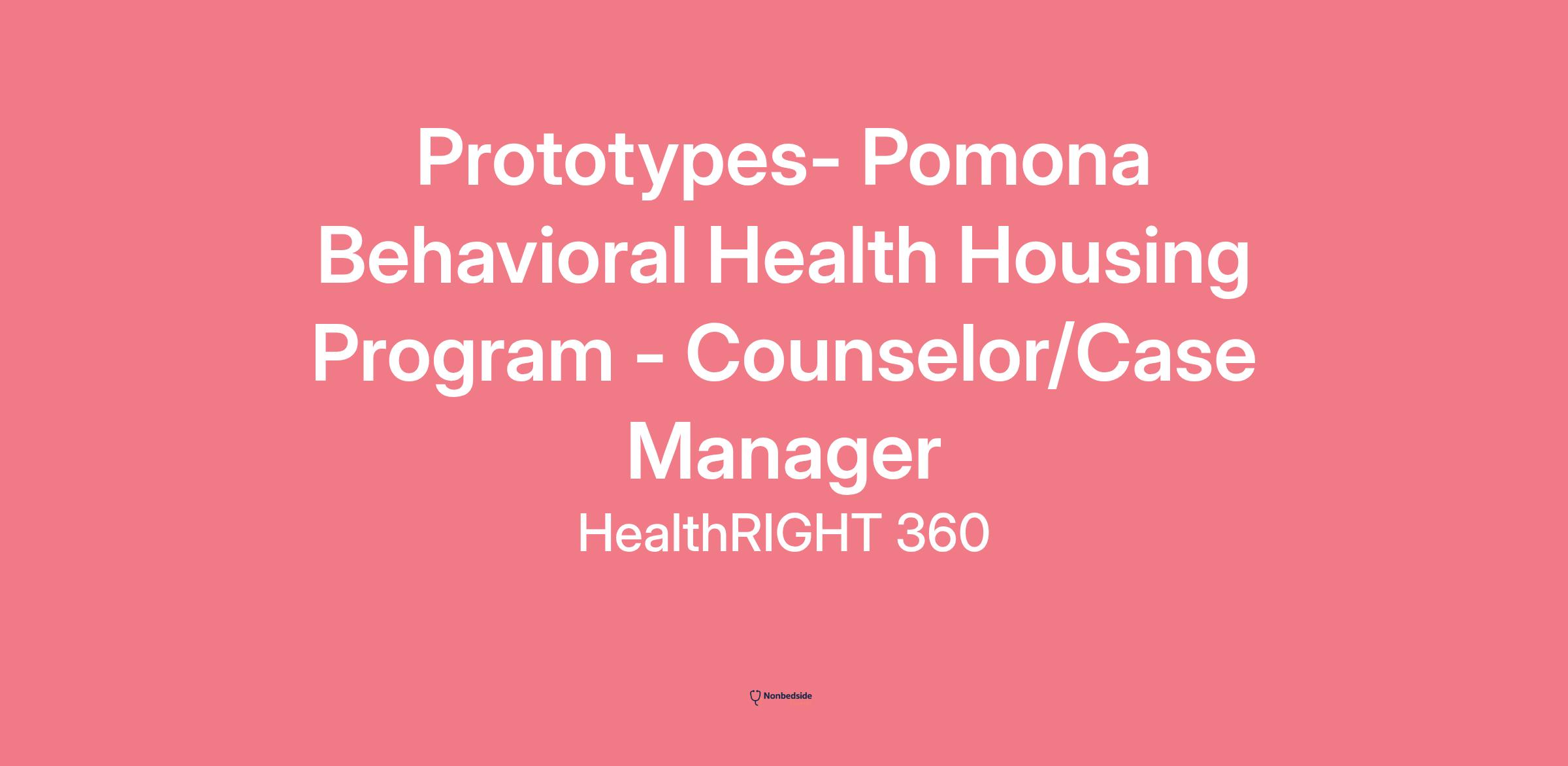 Prototypes- Pomona Behavioral Health Housing Program - Counselor/Case Manager - HealthRIGHT 360