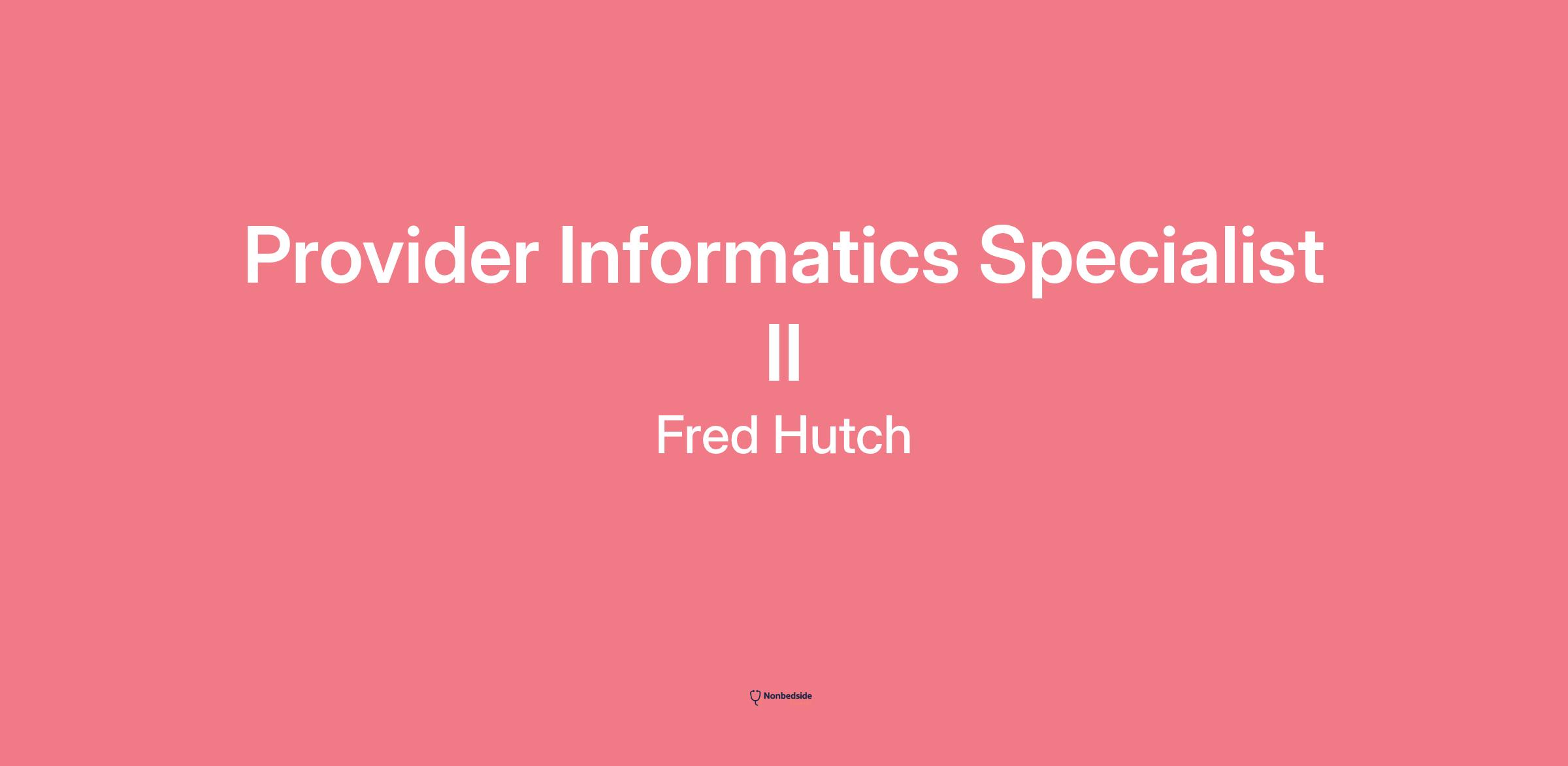 Join to apply for the Provider Informatics Specialist II role at Fred Hutch
