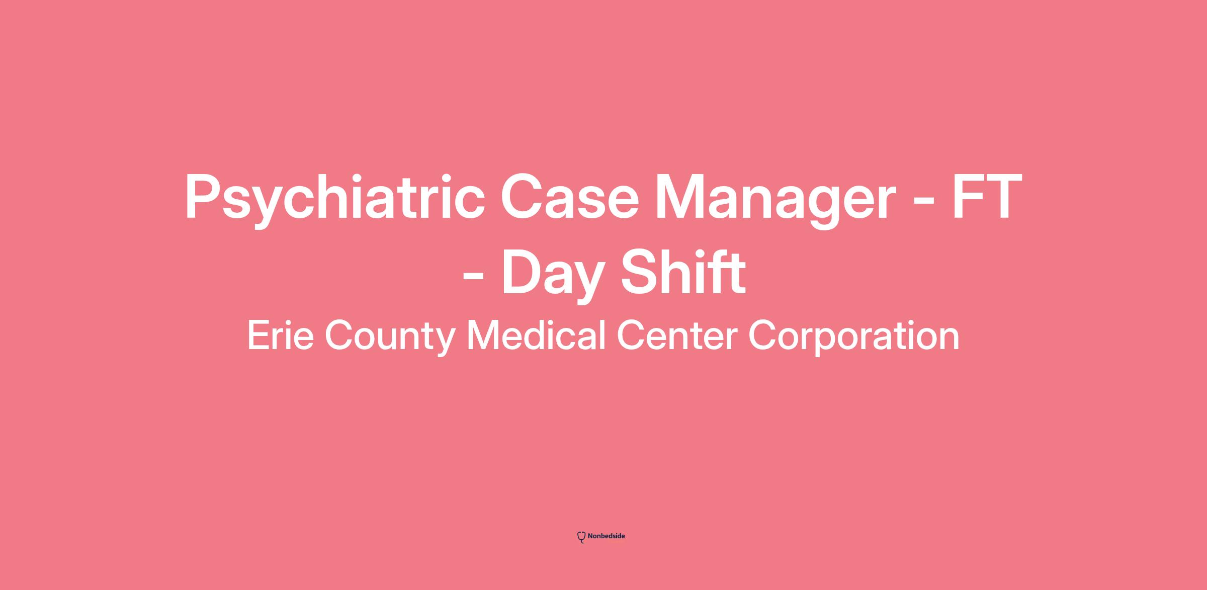 Overview Psychiatric Case Manager - FT - Day Shift role at Erie County Medical Center Corporation. Involves caring for inpatient or outpatient behavioral health patients, working with a multidisciplinary team to support treatment and crisis intervention as required by program needs.