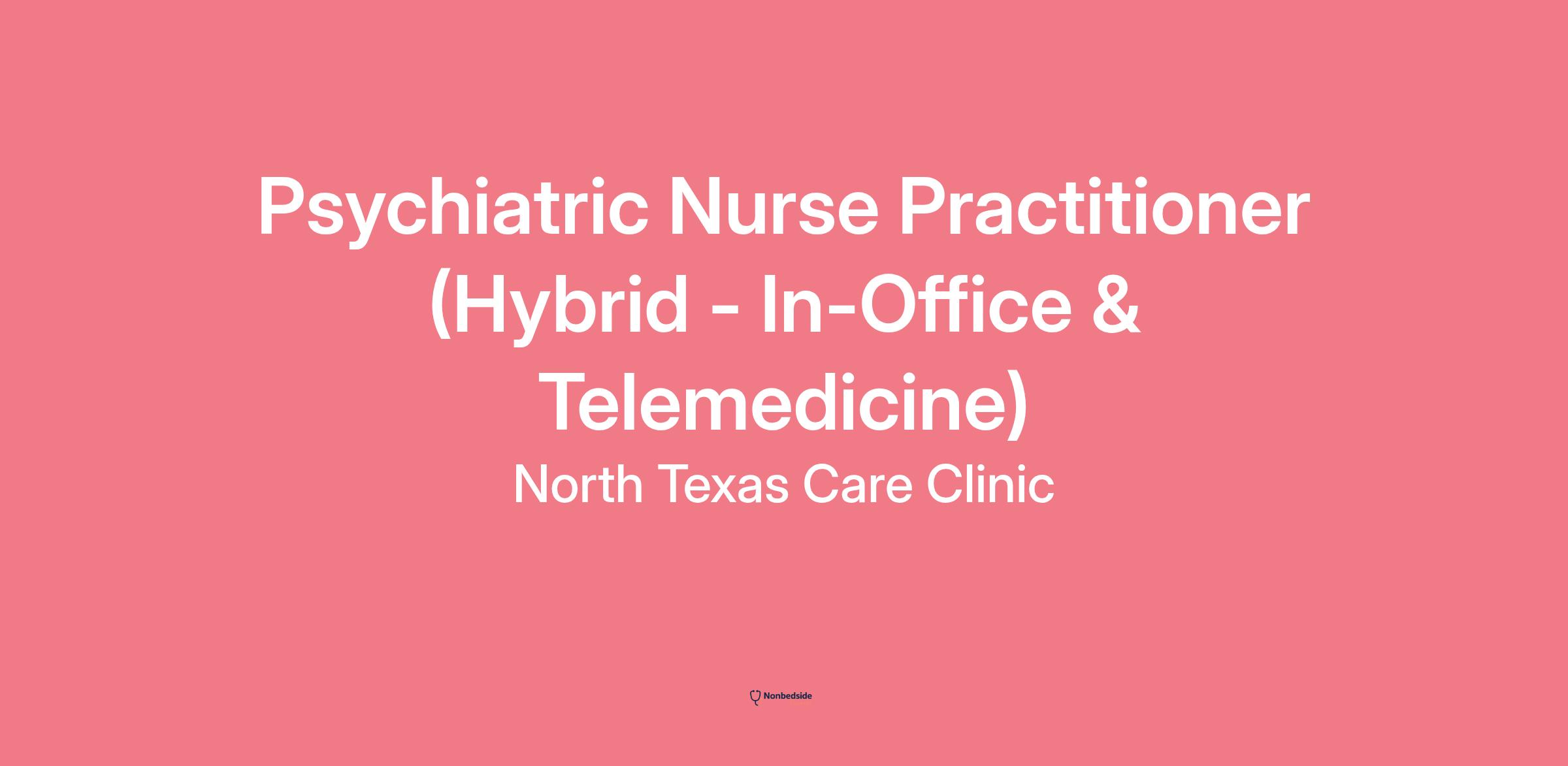 North Texas Care Clinic – Duncanville, TX $80/hour – Part-Time (20 hours/week) Medical Insurance Available