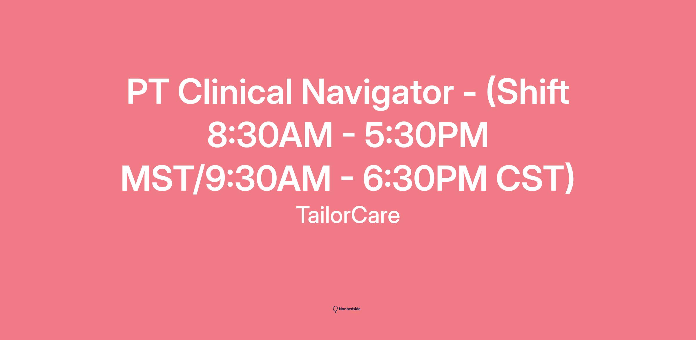 PT Clinical Navigator - (Shift 8:30AM - 5:30PM MST/9:30AM - 6:30PM CST)