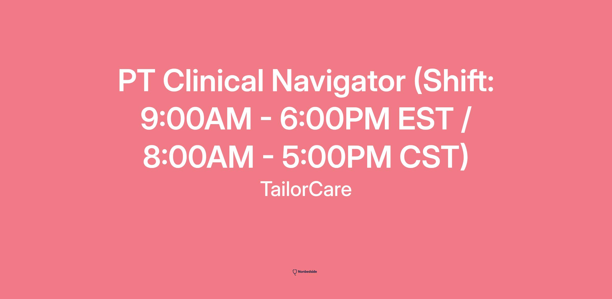 PT Clinical Navigator (Shift: 9:00AM - 6:00PM EST / 8:00AM - 5:00PM CST)