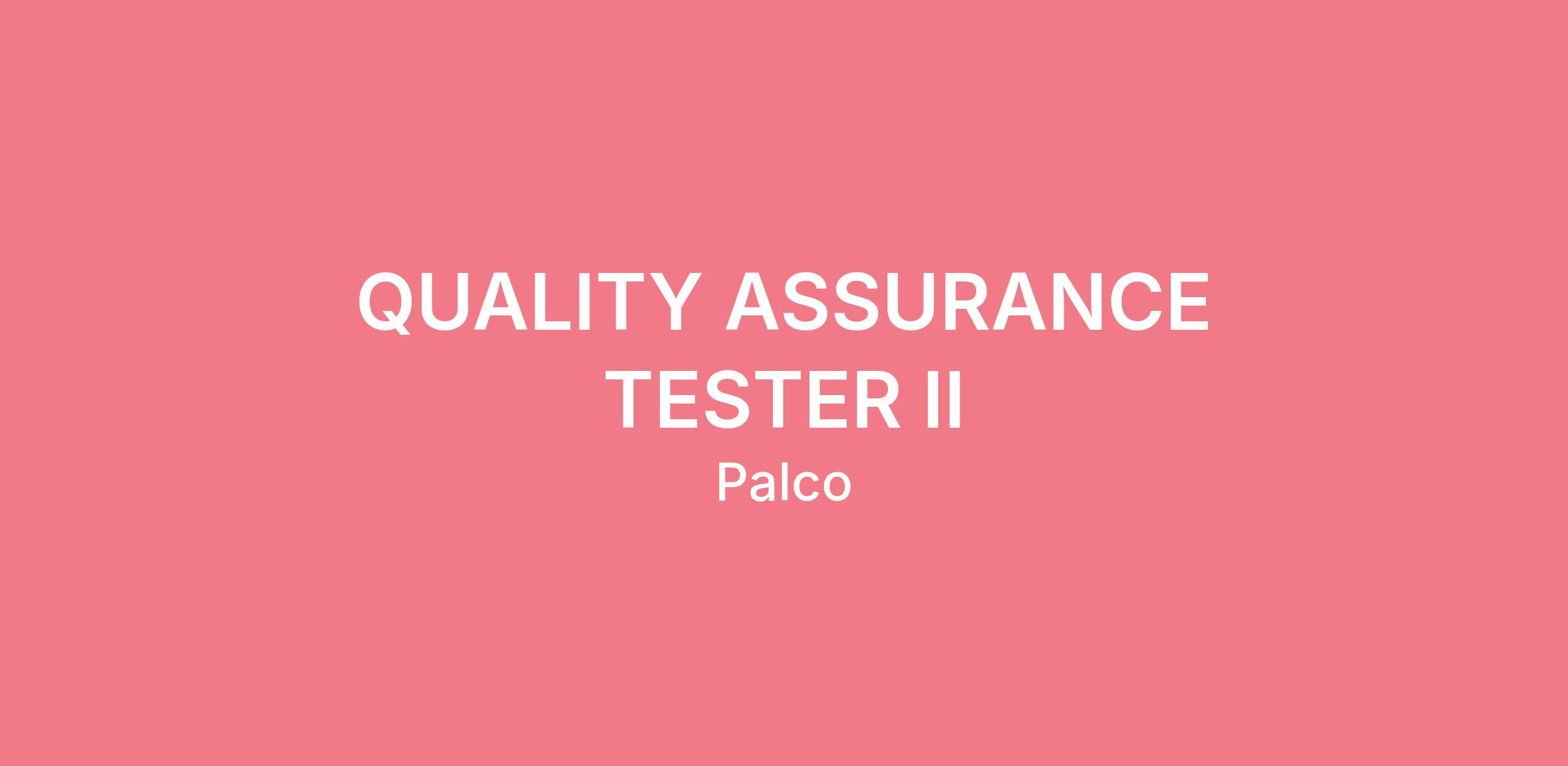 Palco is seeking a Quality Assurance Tester II to join our growing team. This is a remote, work-from-home position. The QA Tester II plays a key role in ensuring software releases meet business and technical specifications, are free of defects, and are ready for production deployment. This role requires strong analytical skills, a deep understanding of QA methodologies, and the ability to lead testing efforts across multiple projects. The QA Tester II is a subject matter expert in assigned areas and contributes to process improvement and mentoring junior testers.
