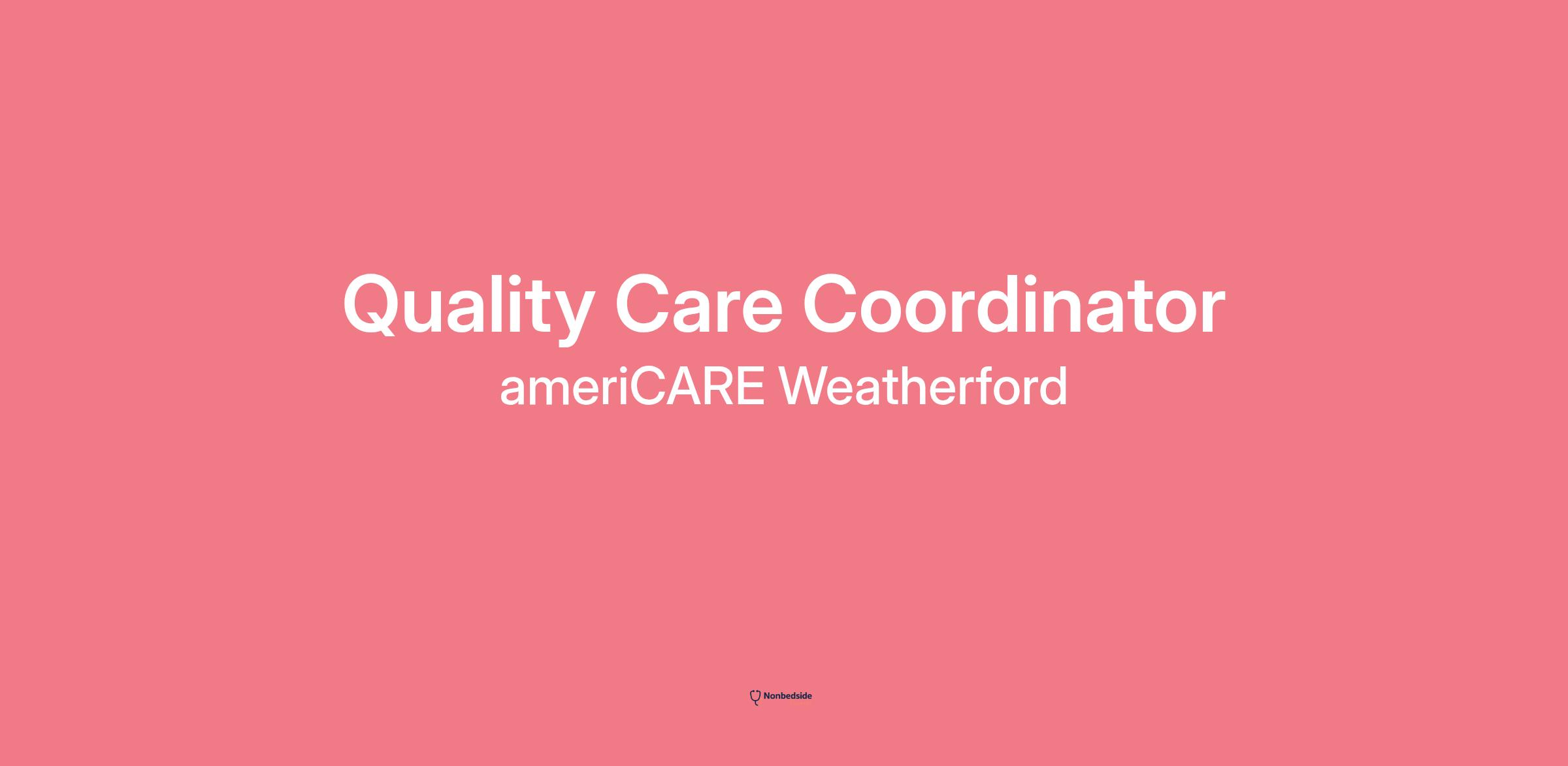 ameriCARE Weatherford is a rapidly growing in-home care agency dedicated to providing compassionate, non-medical services that help our clients maintain their independence and improve their quality of life. Our caregivers go directly to clients' homes, delivering personalized care and support. We are currently seeking a dedicated and experienced Quality Care Coordinator to join our team and ensure the highest standards of care are consistently met.