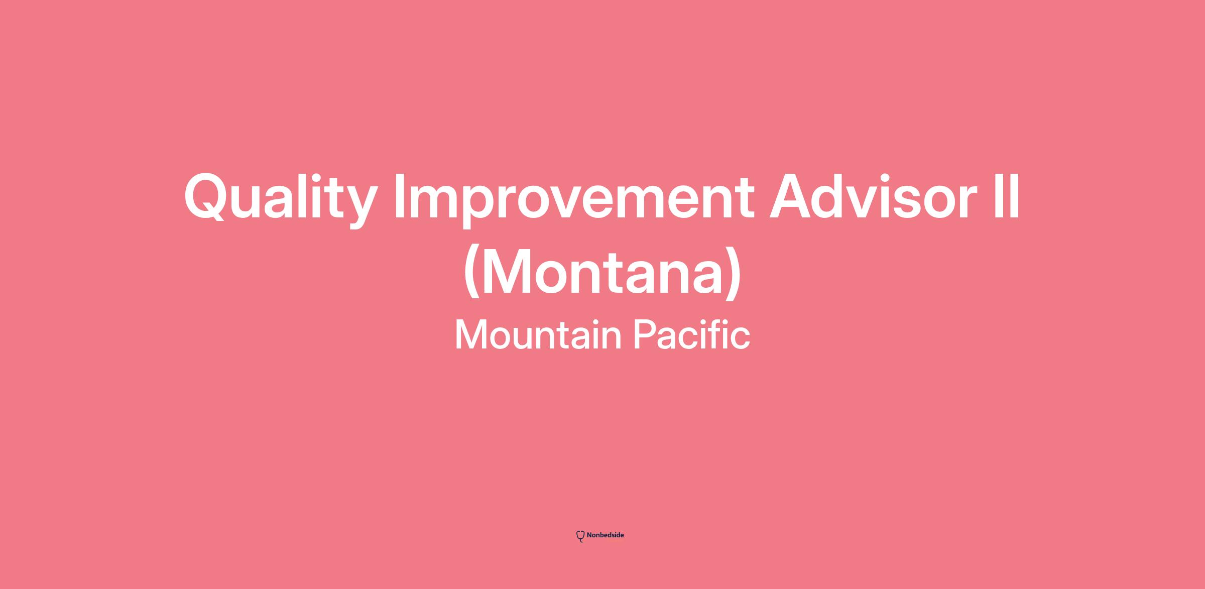 We have an opening for a Quality Improvement Advisor (QIA) II- Remote (Must reside in Montana)