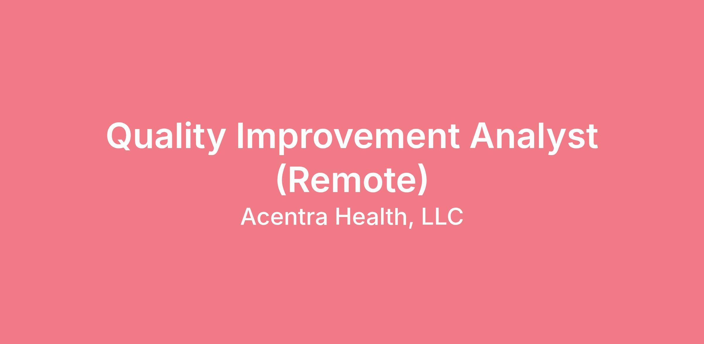 Acentra Health is looking for a Quality Improvement Analyst to join our growing team.