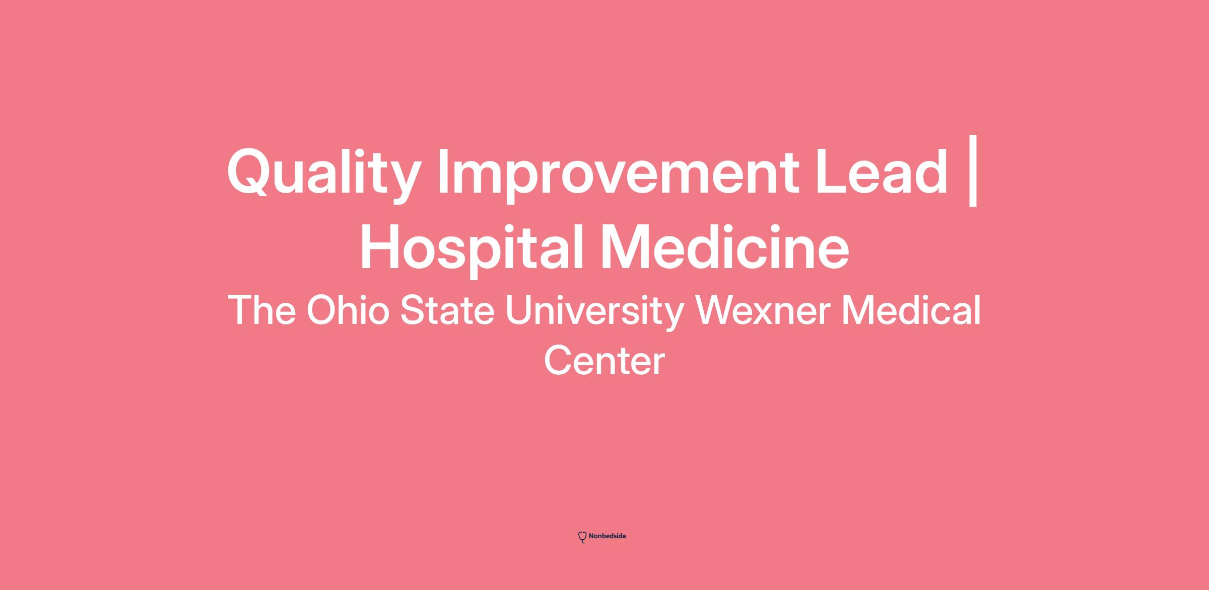 Join to apply for the Quality Improvement Lead | Hospital Medicine role at The Ohio State University Wexner Medical Center .