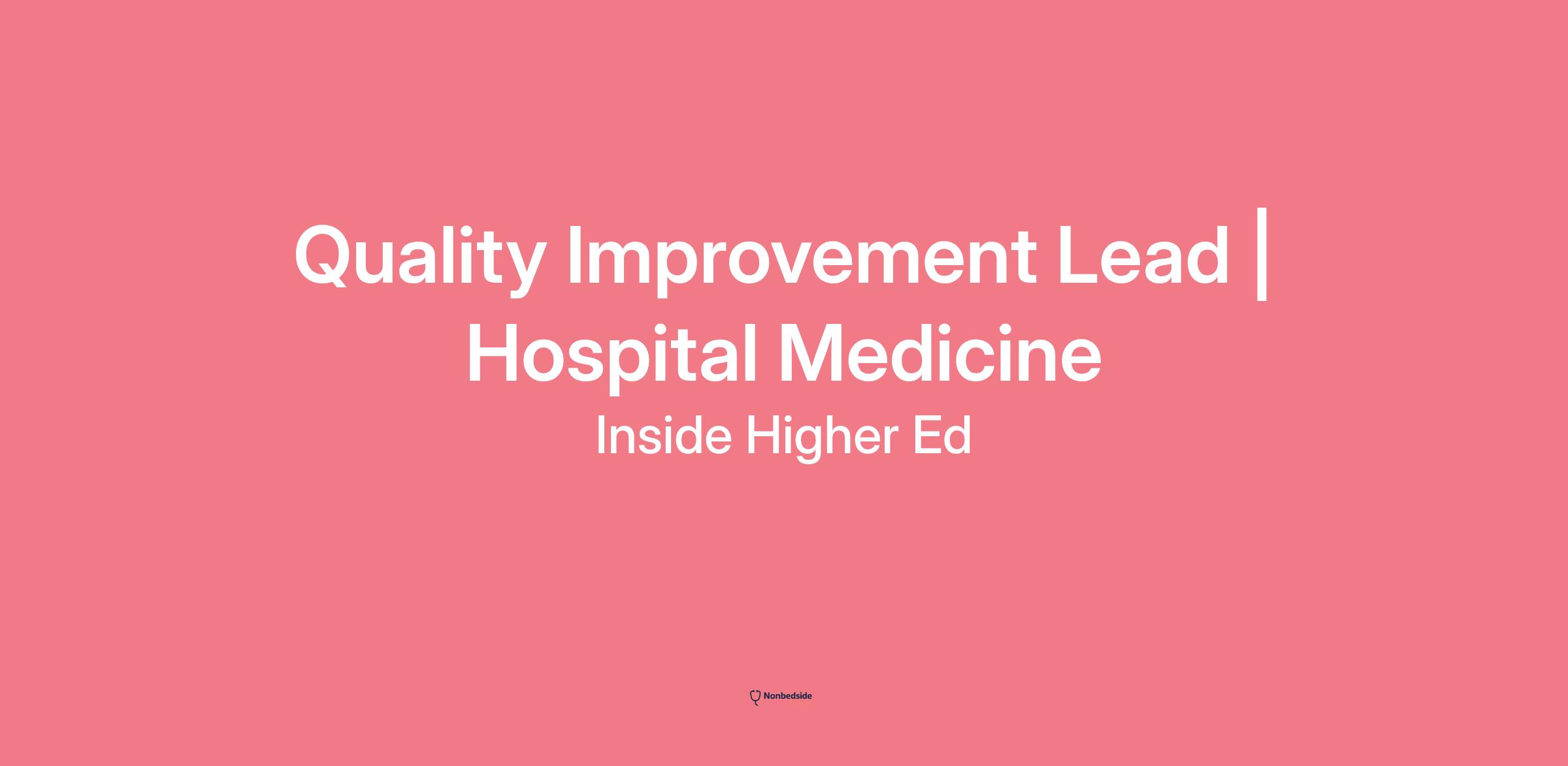 Join to apply for the Quality Improvement Lead | Hospital Medicine role at Inside Higher Ed .