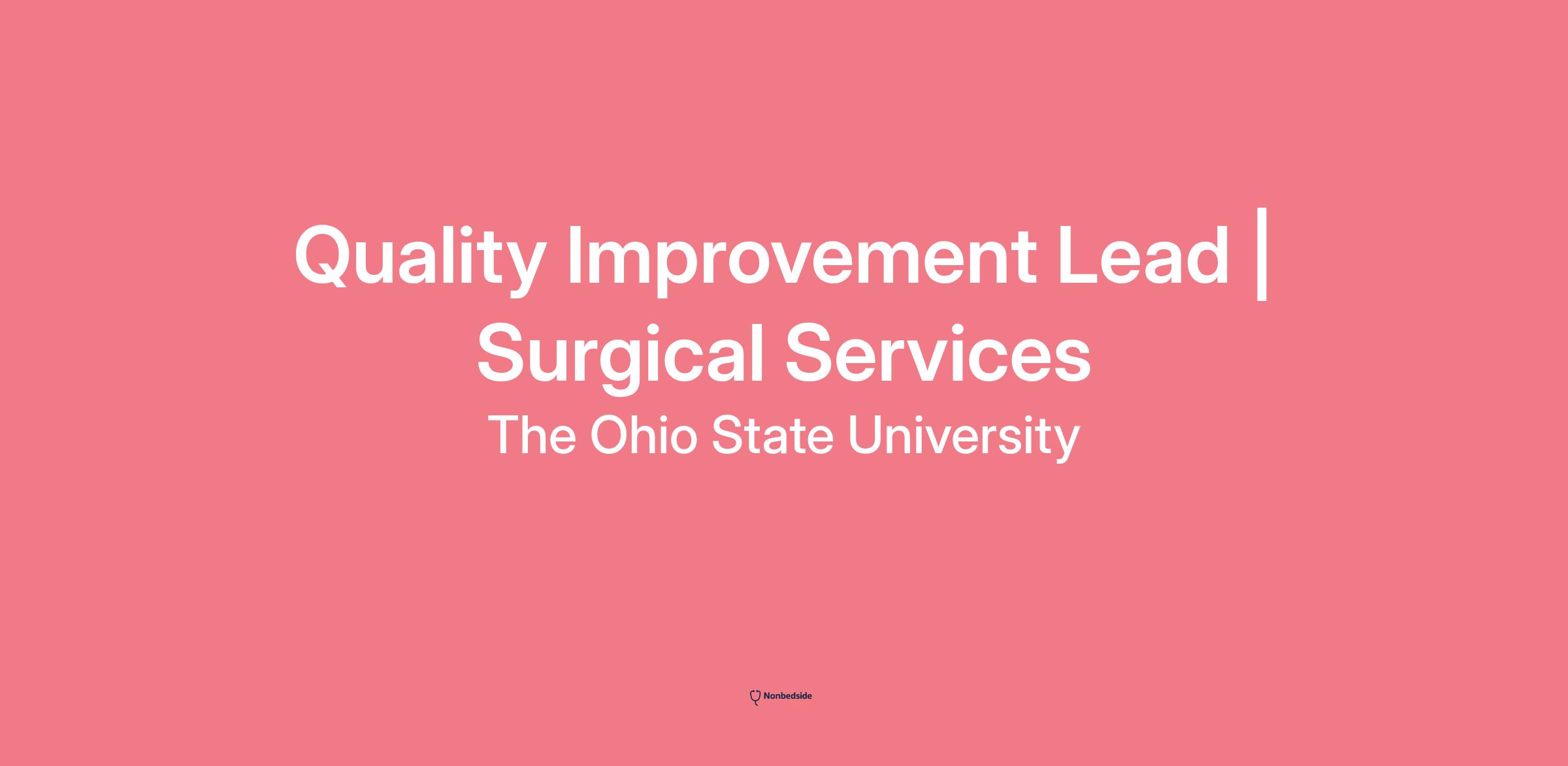 Job Title: Quality Improvement Lead | Surgical Services Department: Health System Shared Services | Quality and Operations