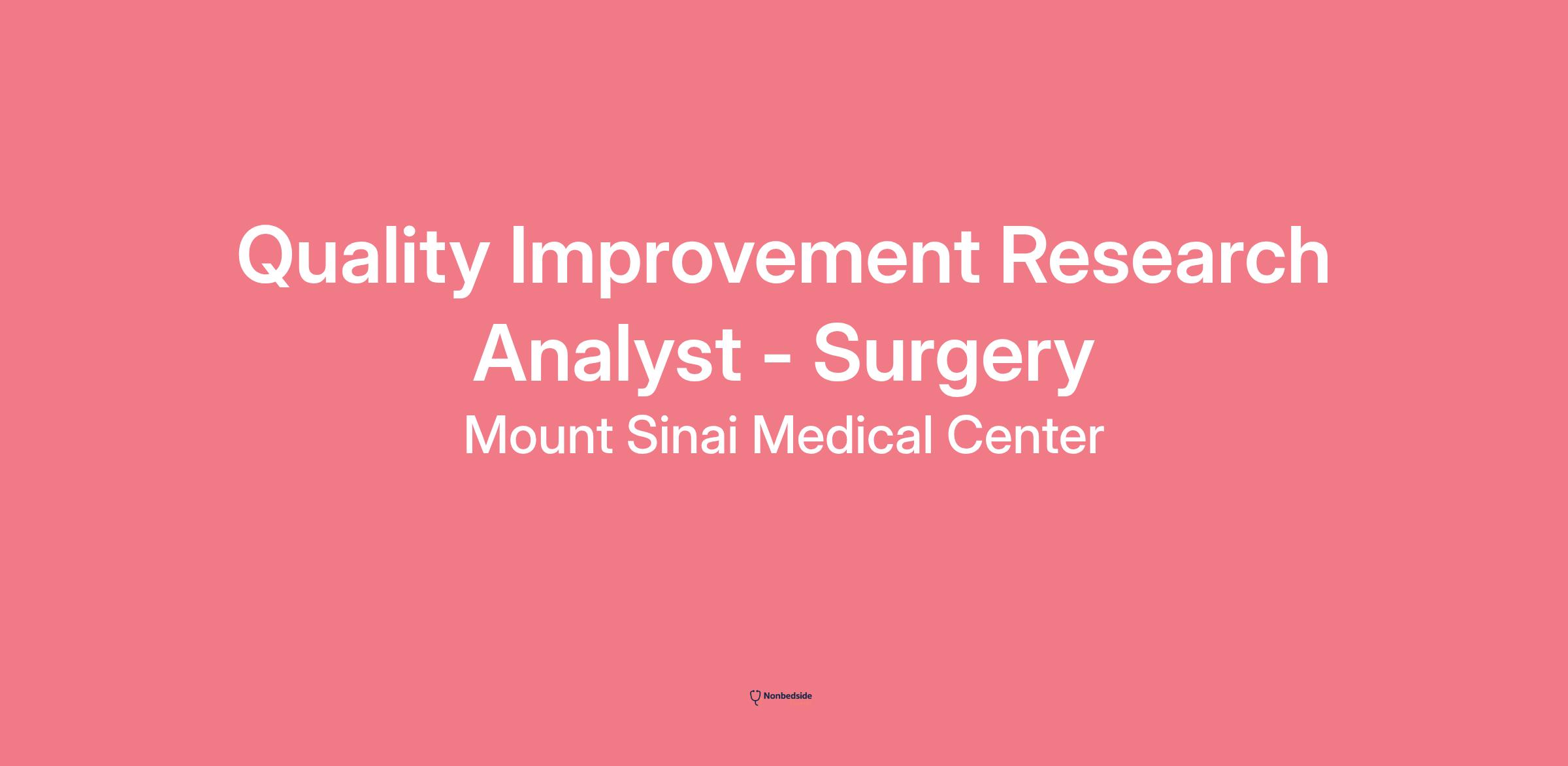 Description The Quality Improvement Research Analyst is responsible for preparing data abstractions and analyses of clinical data; assisting in the design and testing of data collection instruments and assisting in project management and research activities. As a member of the project team, the QI/RA assists in project management and research activities. The Quality Improvement Research Analyst handles the identification, abstraction and analysis of clinical data pertinent to clinical quality improvement projects.